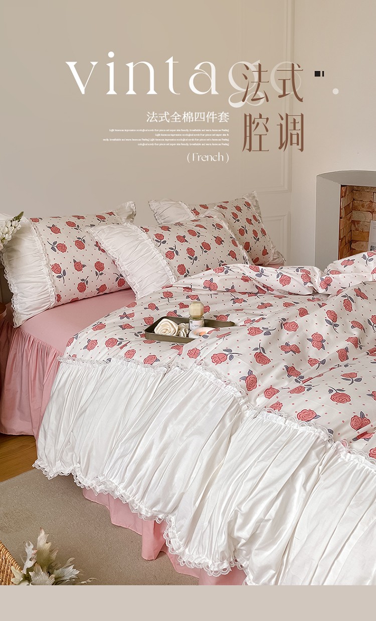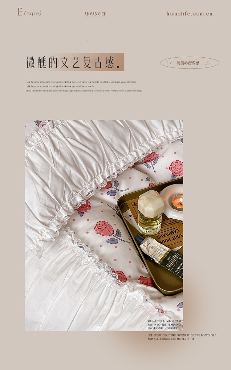 当前位置: 91家纺网 > 商品网购 > 床品套件 > 四件套 > 全棉普通四件套 > 婳庭 2023新款法式复古拼接纯棉四件套 春田