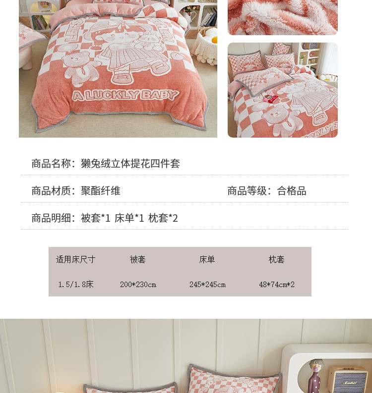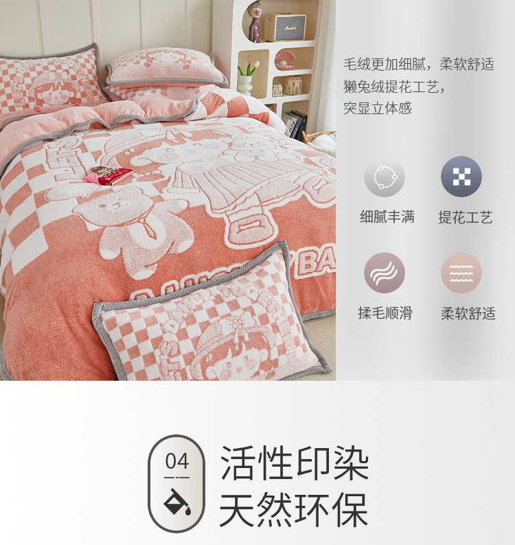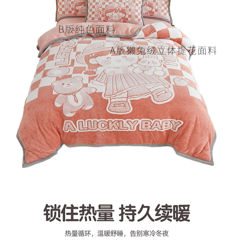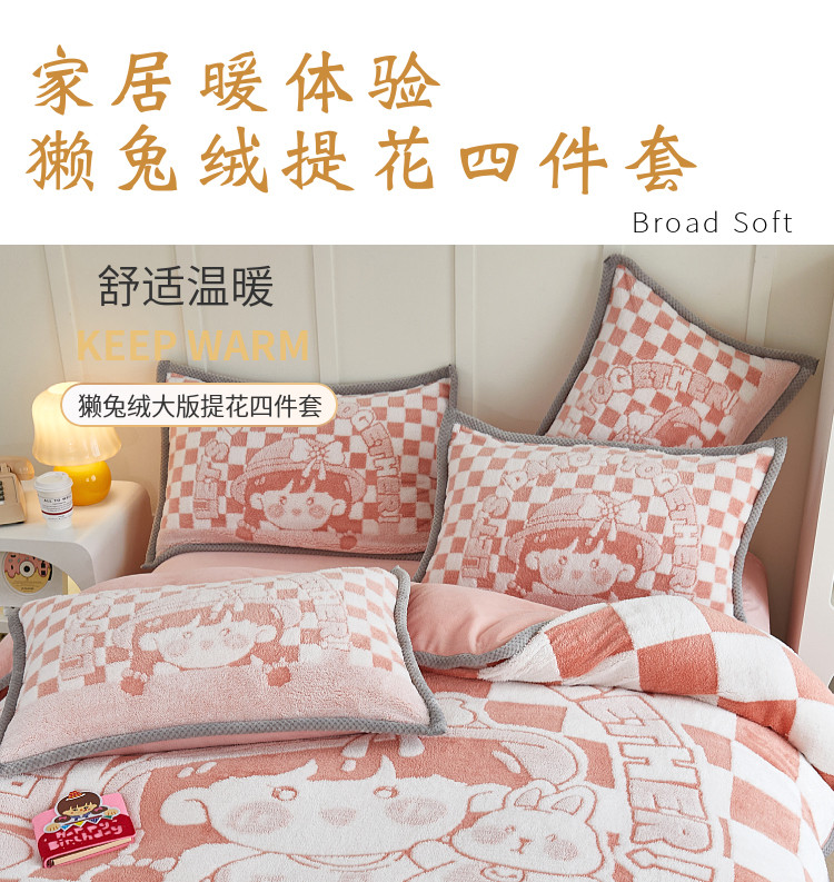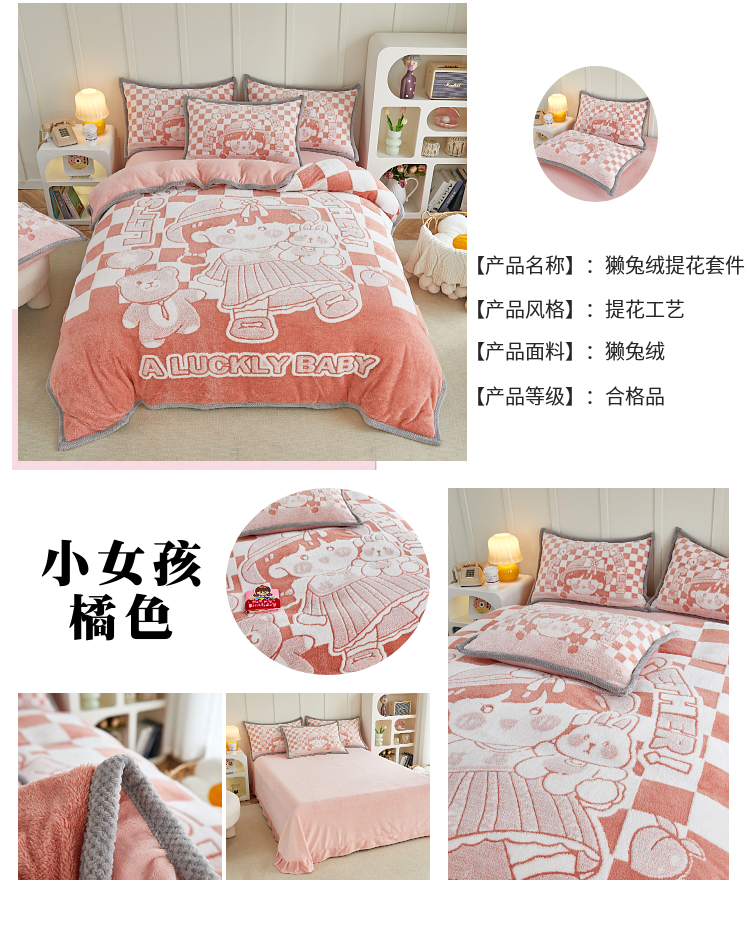 商品名称:丝羽坊 2022新款獭兔绒大版提花四件套 小女孩橘色