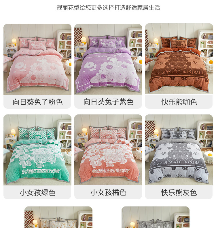 (总)丝羽坊 2025新款A类潮款加厚牛奶绒四件套,软萌宝贝,奶芙猫咪,蓝调汪汪,萌趣玩偶,灰调萌犬,抱抱熊,彩色蝴蝶结,粉粉喵窝,花裙女孩,紫色喵影