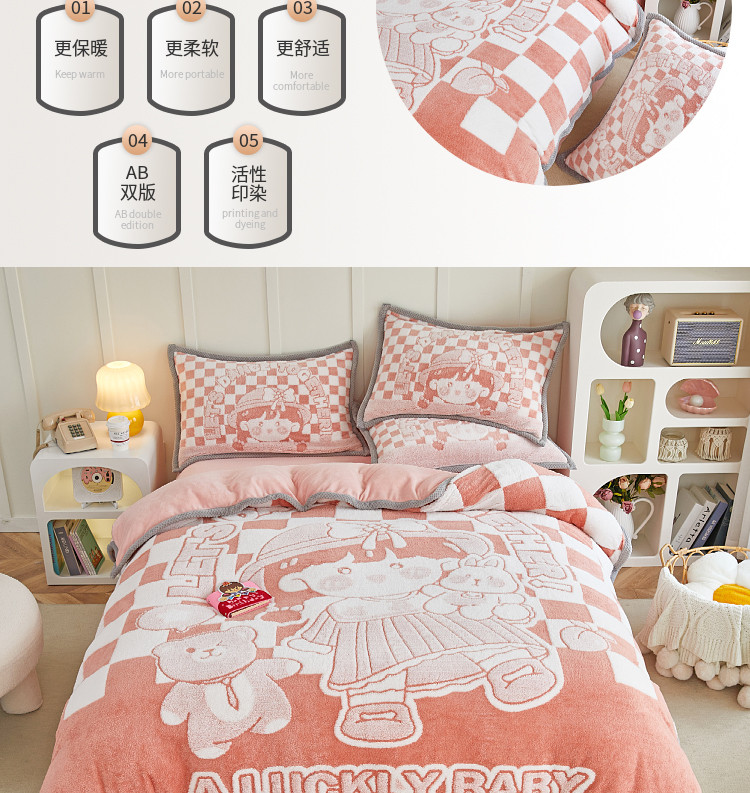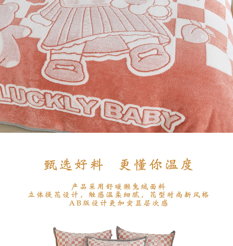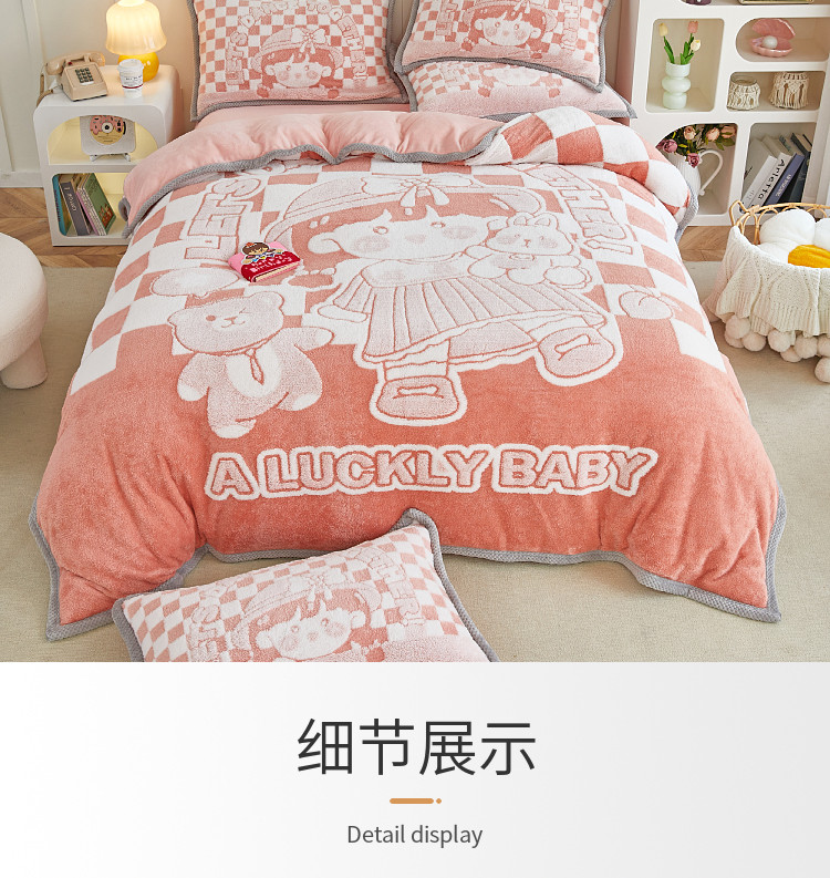 丝羽坊 2022新款獭兔绒大版提花四件套 小女孩橘色