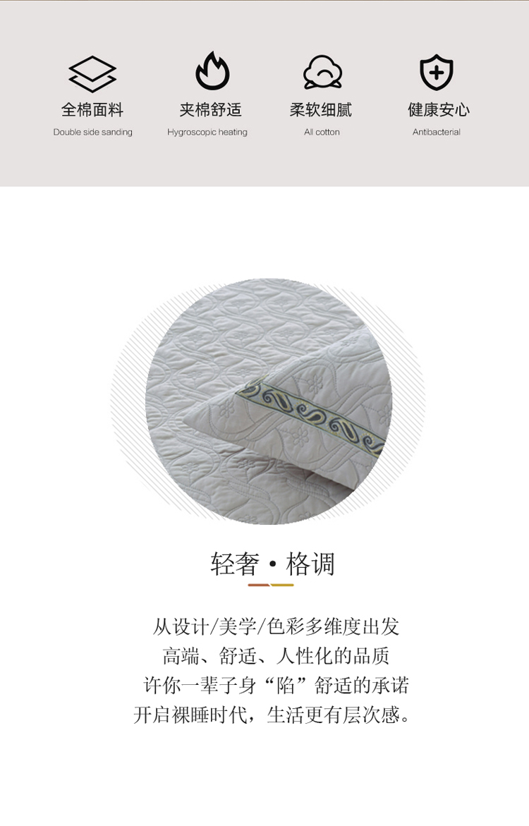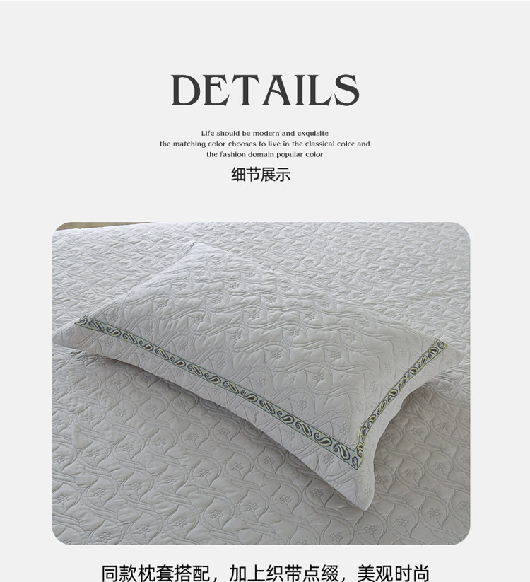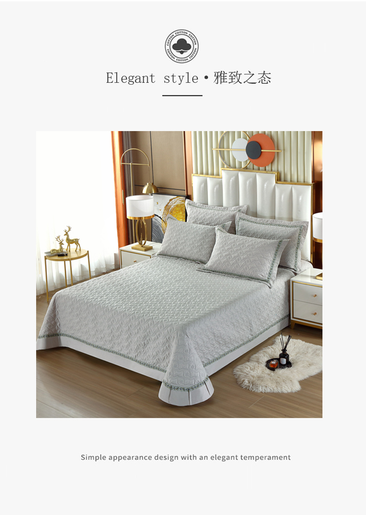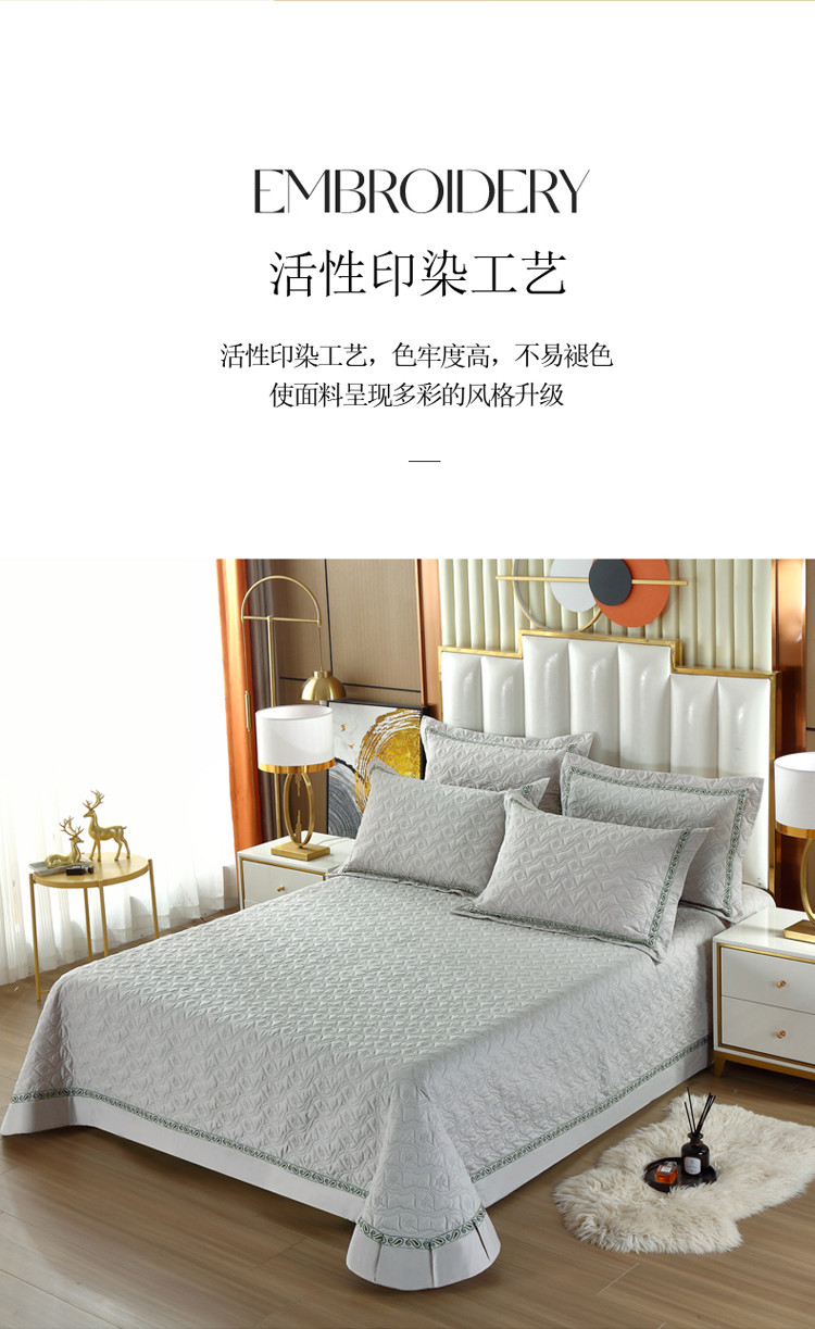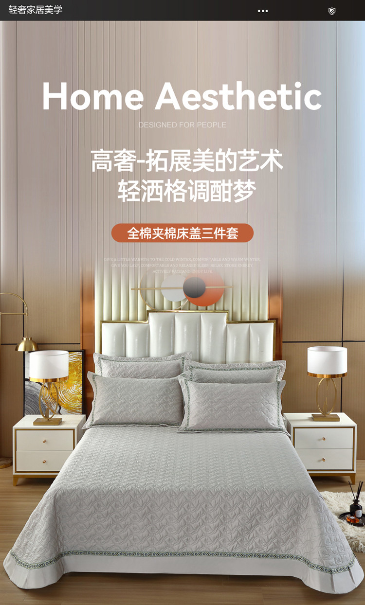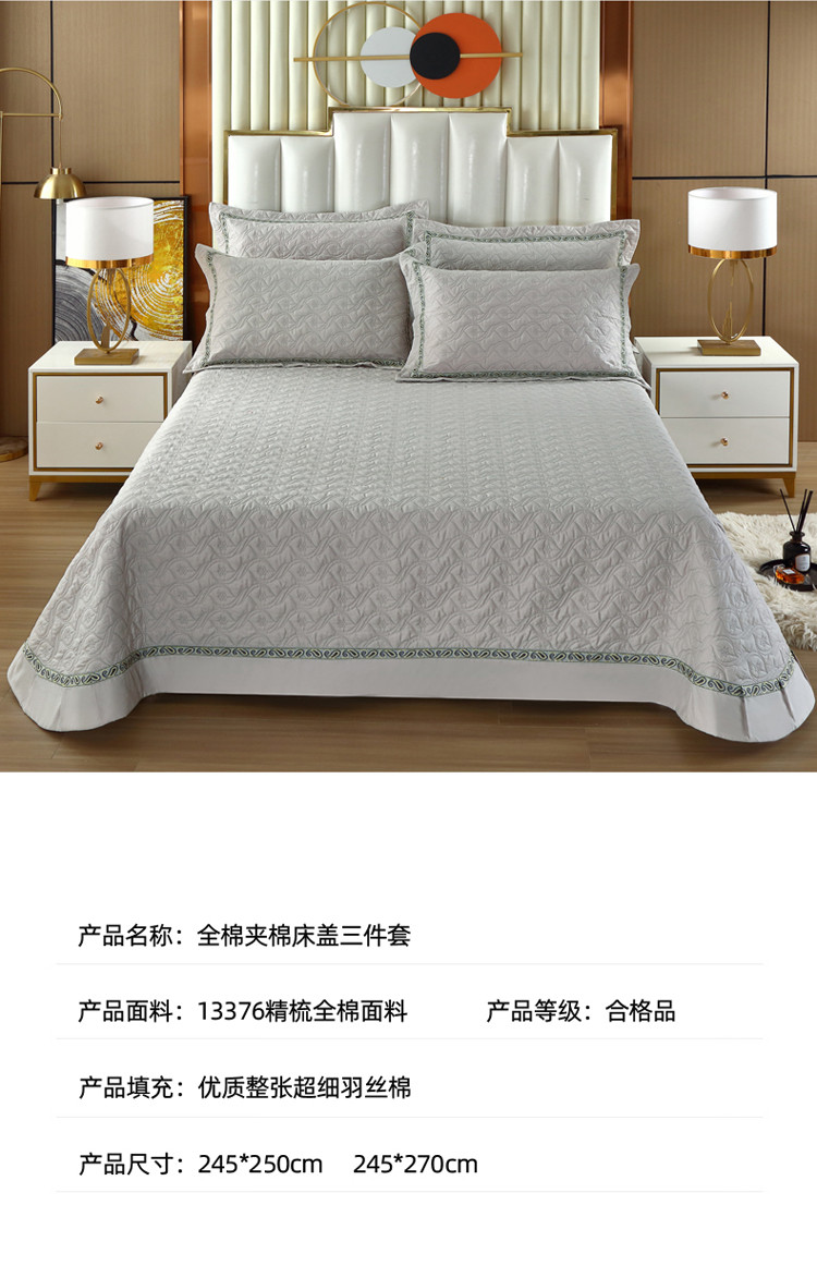 商品名称:OL家纺 2022新款纯色全棉夹棉床盖单件三件套 银灰