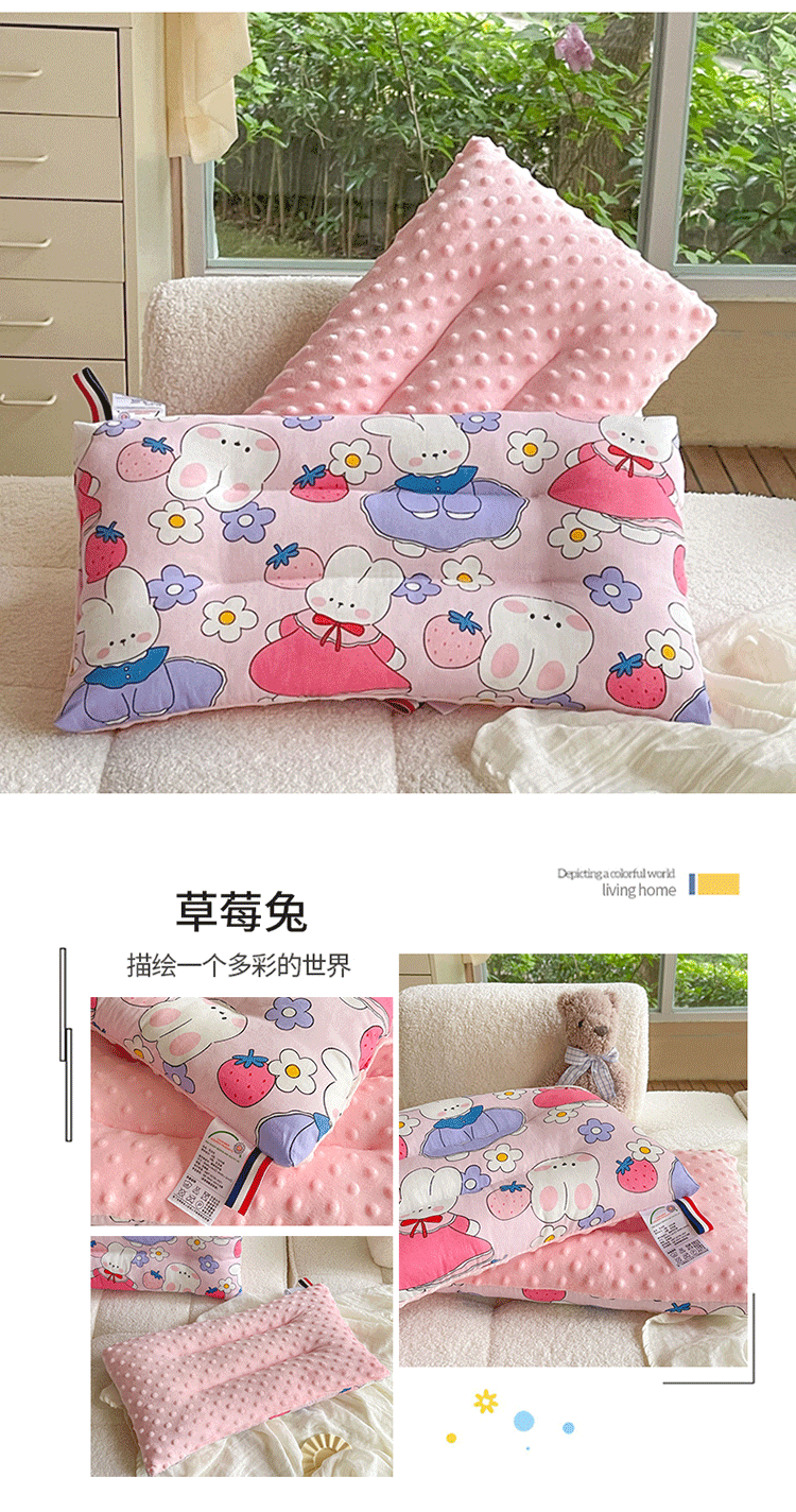 当前位置: 91家纺网 > 商品网购 > 枕头/枕芯/保健枕/颈椎枕 > 普通枕芯 > 宝晶枕芯 新款全棉儿童安抚豆豆枕儿童枕头幼儿园枕芯 草莓兔