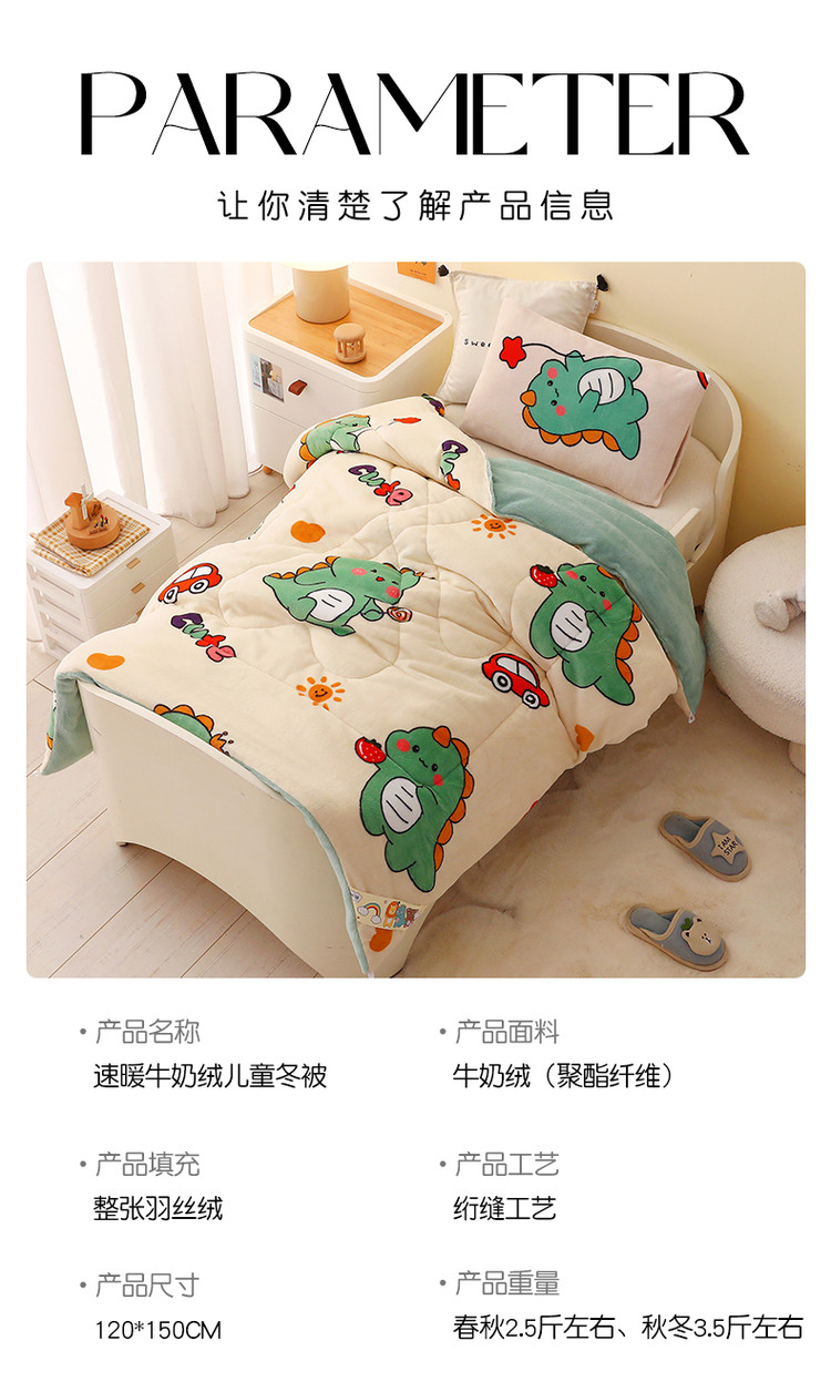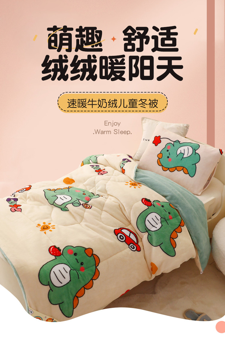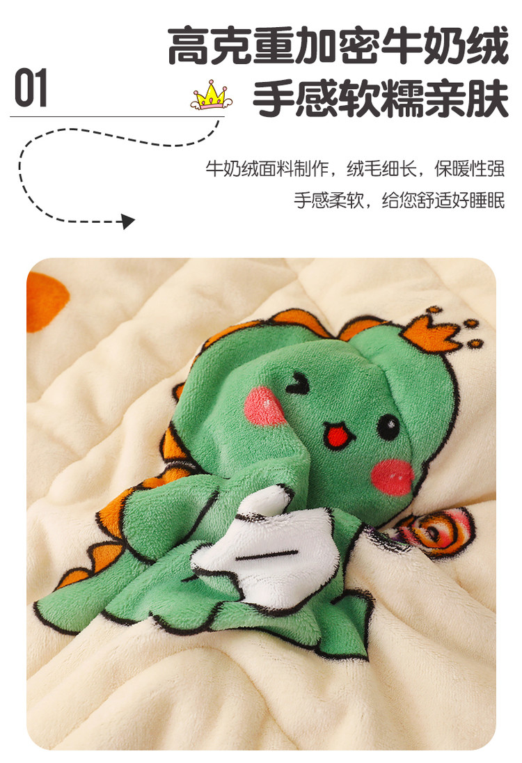 商品名称:鱼宝 2022新款儿童双面牛奶绒冬被 恐龙先生