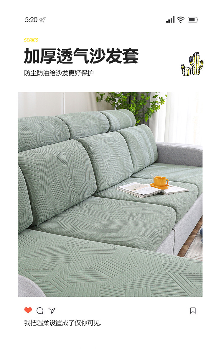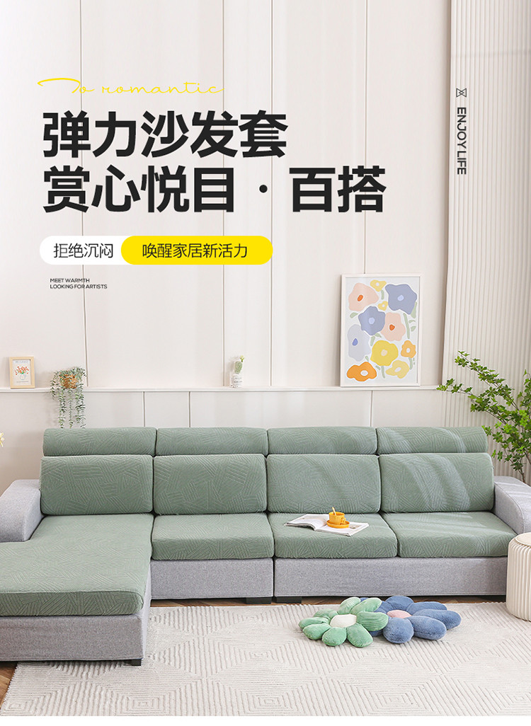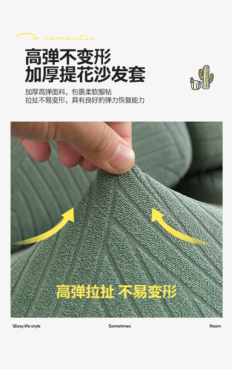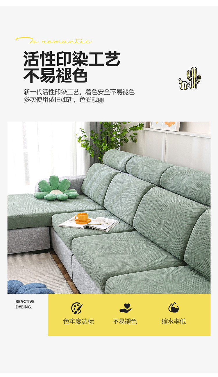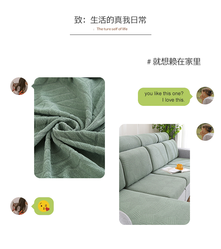 当前位置: 91家纺网 > 商品网购 > 居家布艺 > 坐垫/椅垫/沙发垫 > 沙发垫 > 千彤沙发垫 2022新款提花自由生活系列弹力沙发套 豆绿