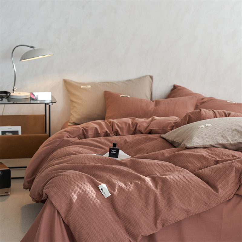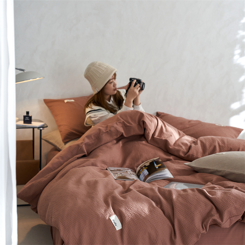 当前位置: 91家纺网 > 商品网购 > 床品套件 > 四件套 > 牛奶绒四件套 > 简家居2022新款华夫格二代全面升级系列四件套 豆沙