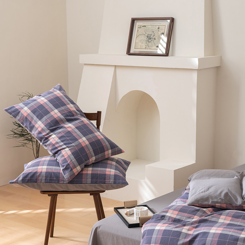 柠馨 2023新款全棉色织水洗棉单品枕套 清雅紫灰