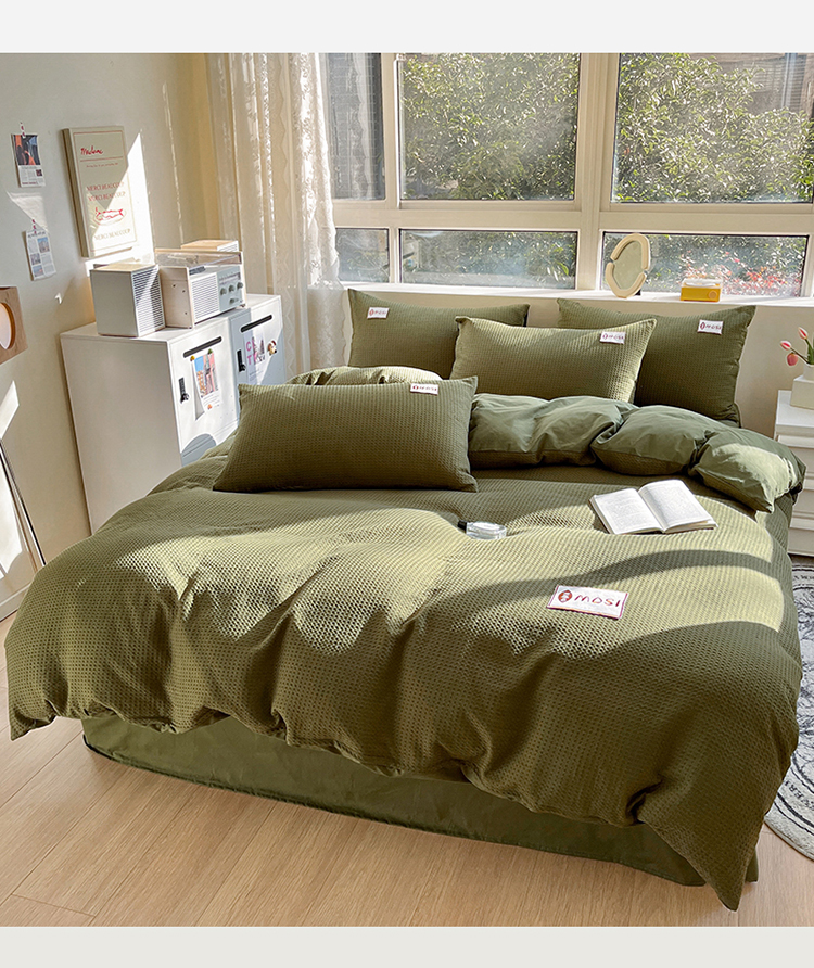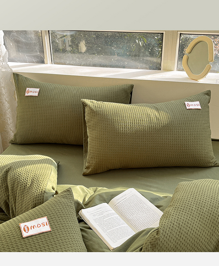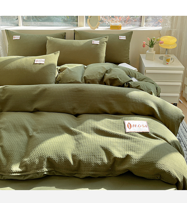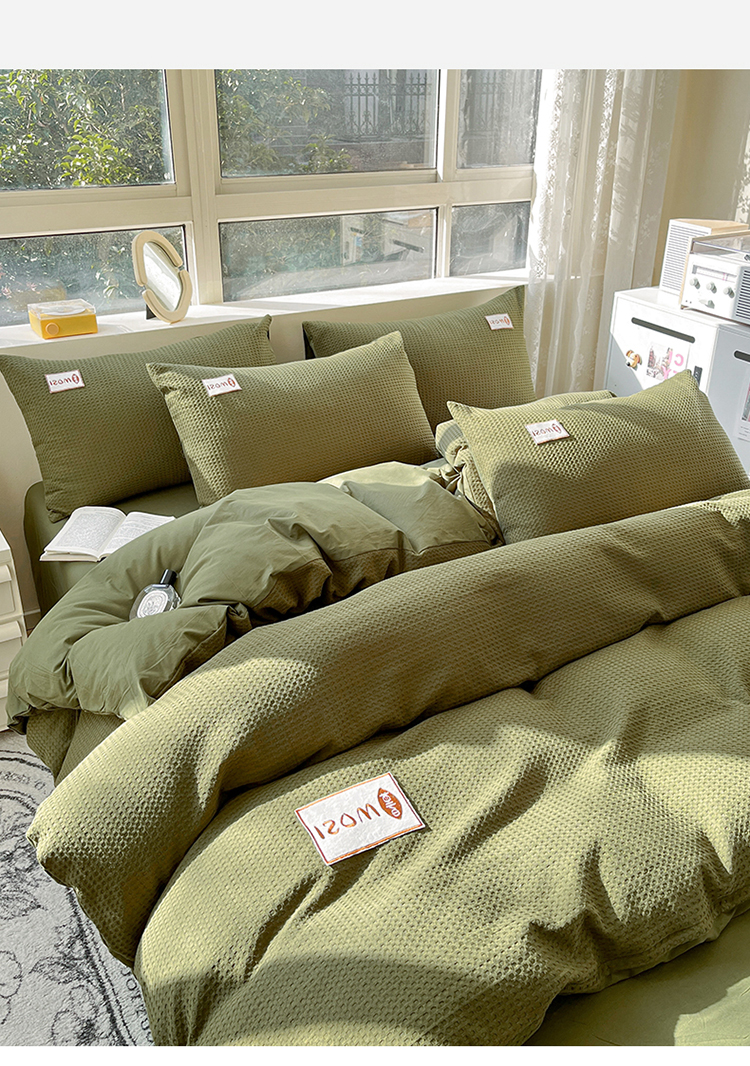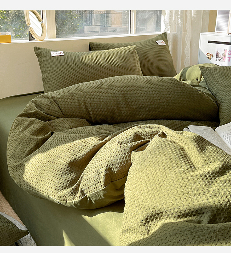 商品名称:蓝巢2023新款A版60支全棉华夫格B版40支全棉水洗棉四件套蜜格系列 蜜格-松叶绿