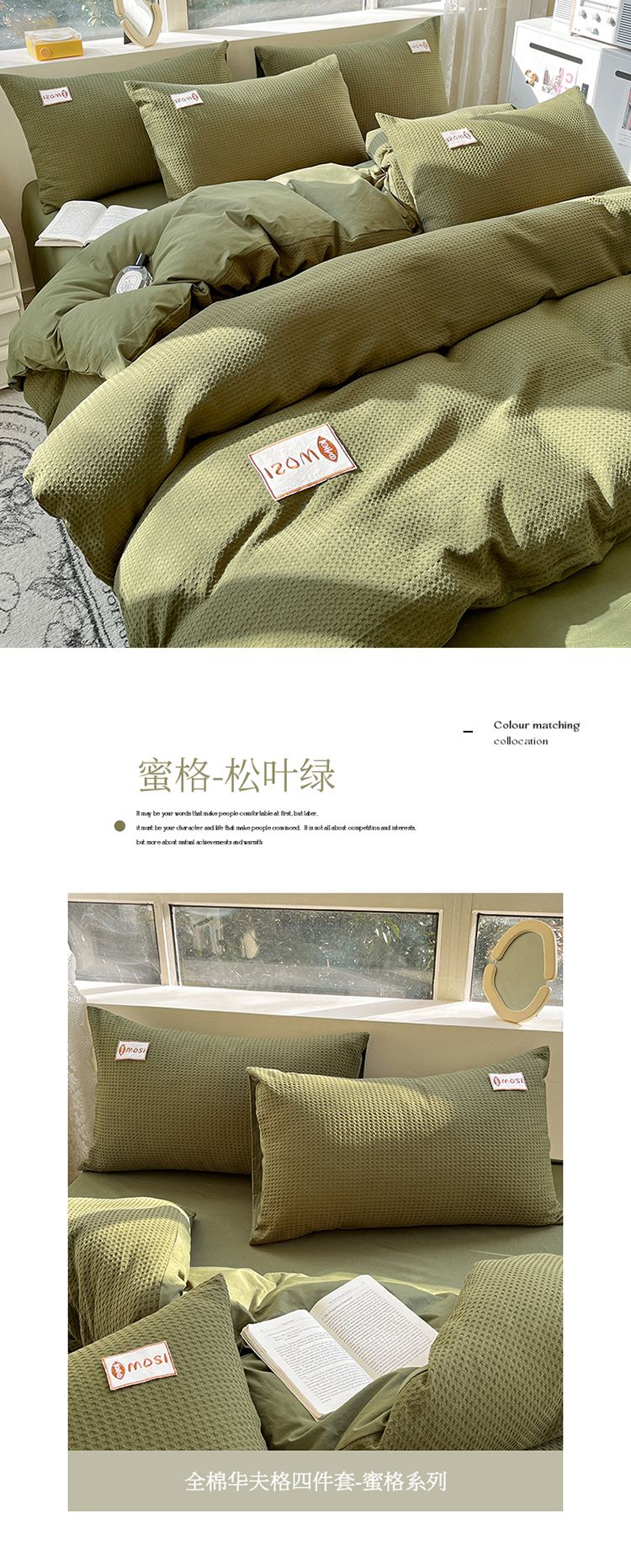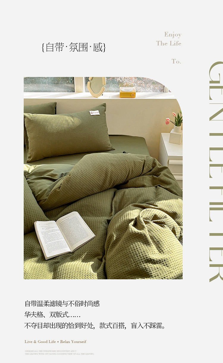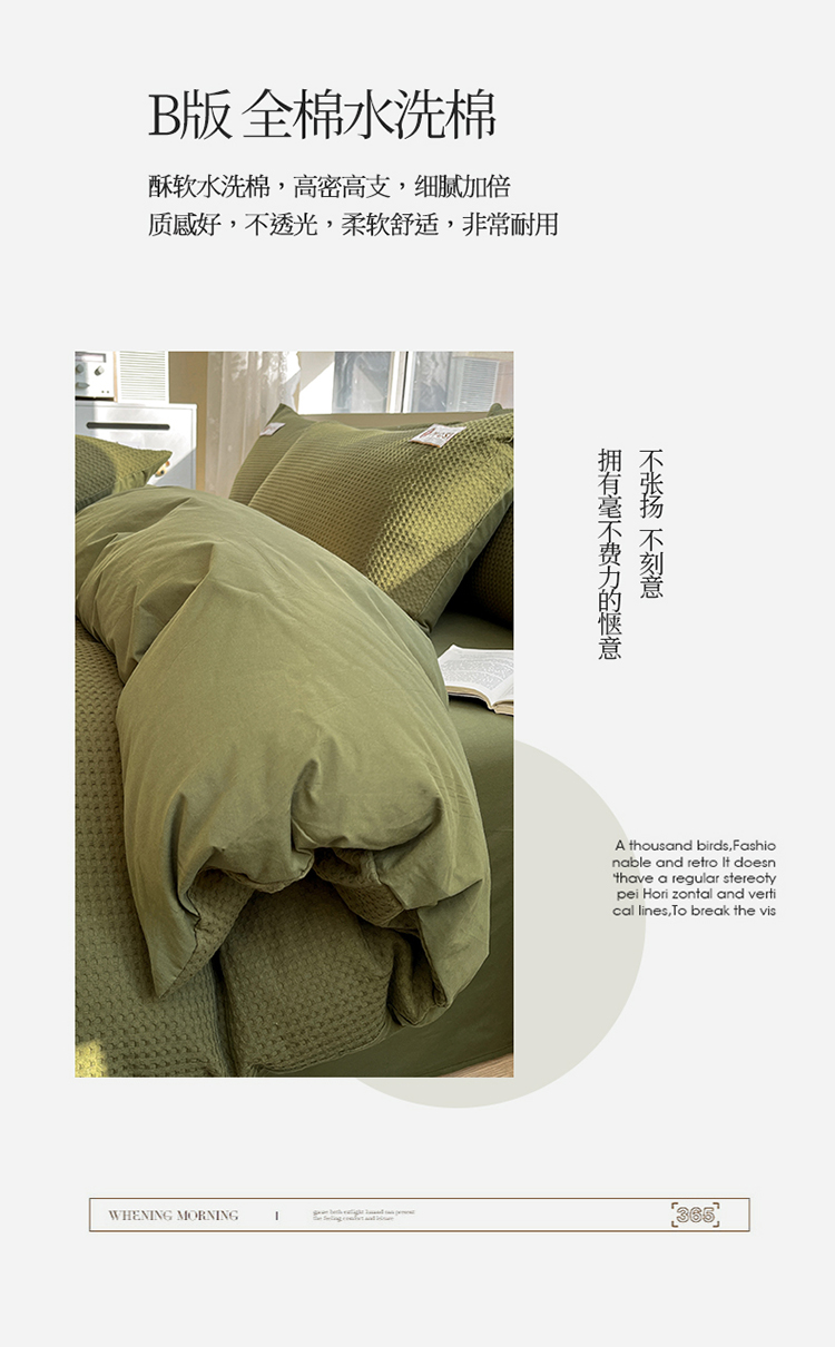 商品名称:蓝巢2023新款A版60支全棉华夫格B版40支全棉水洗棉四件套蜜格系列 蜜格-松叶绿