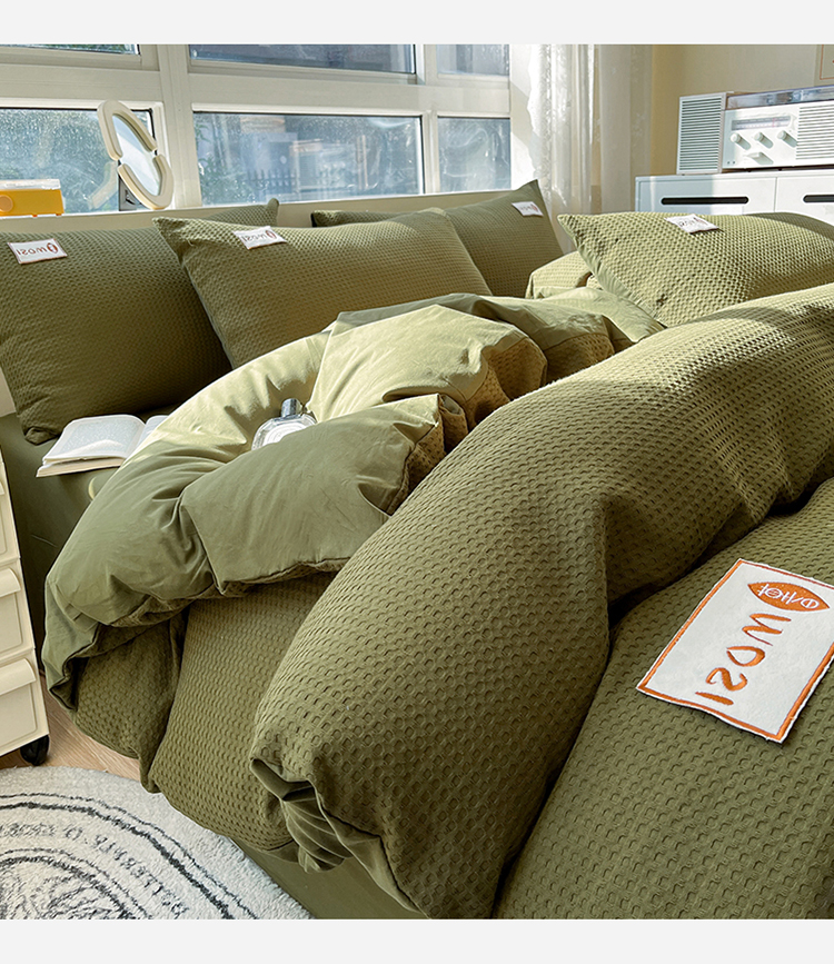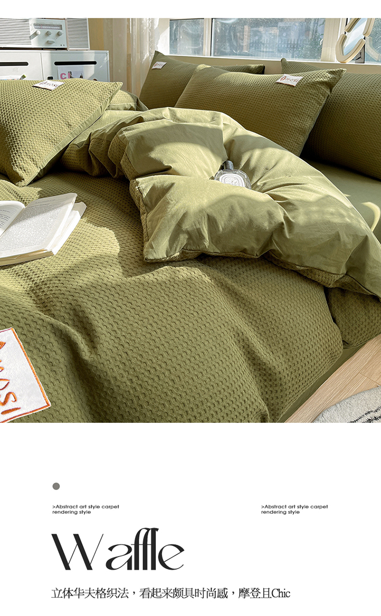 蓝巢2023新款A版60支全棉华夫格B版40支全棉水洗棉四件套蜜格系列 蜜格-松叶绿