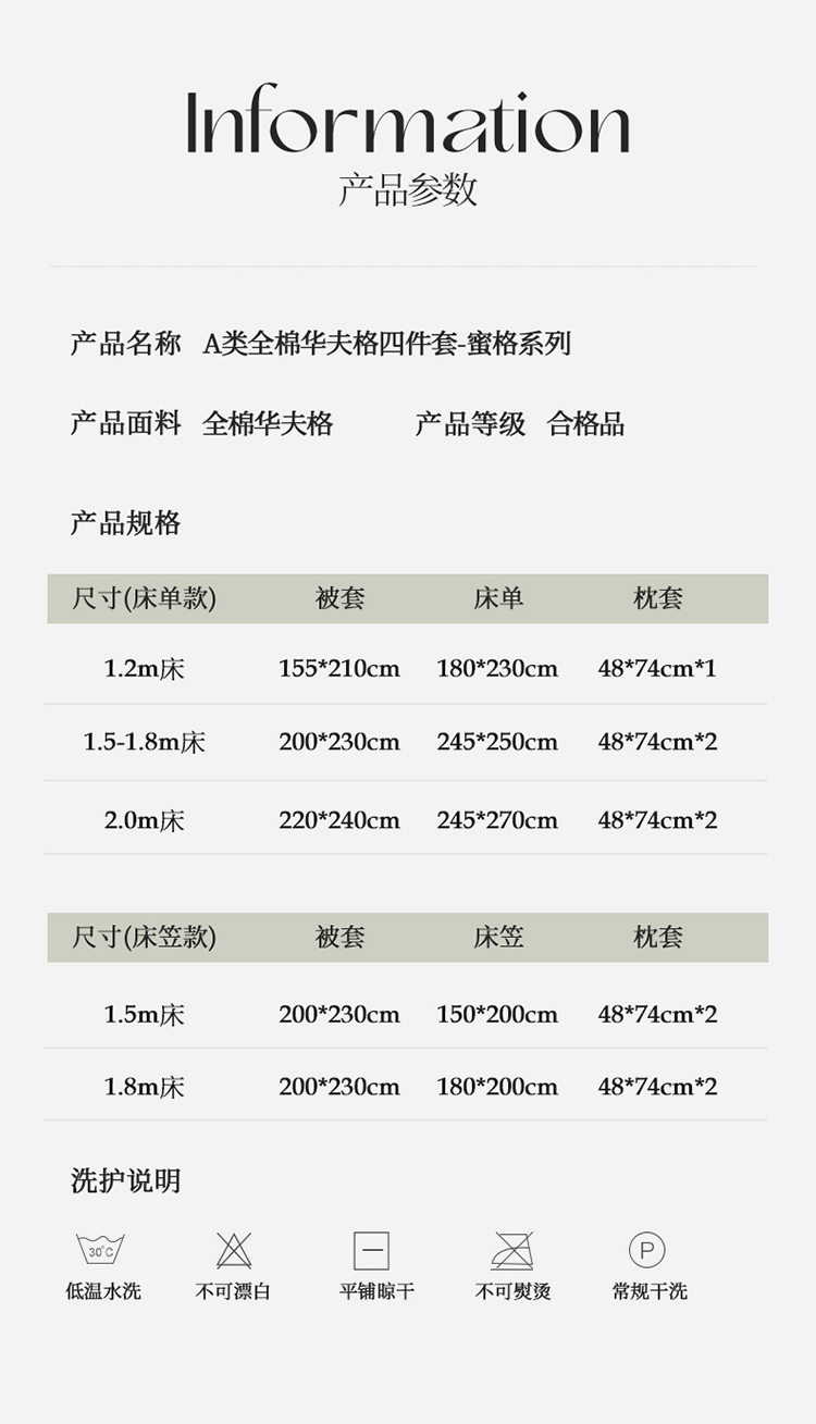 (总)蓝巢2023A版60支全棉华夫格B版40支全棉水洗棉四件套蜜格,华夫格奶白,华夫格奶黄,华夫格浅粉,华夫格浅紫,华夫格水绿,华夫格天空蓝,华夫格中灰,蜜格-本白,蜜格-高级灰,蜜格-焦糖,蜜格-米驼,蜜格-松叶绿