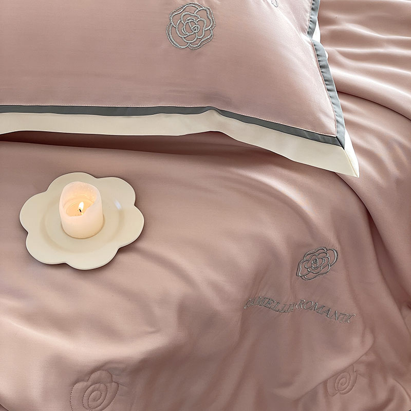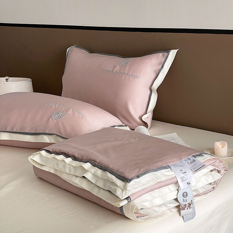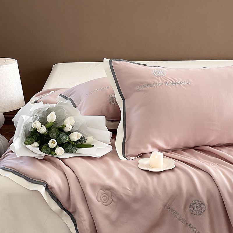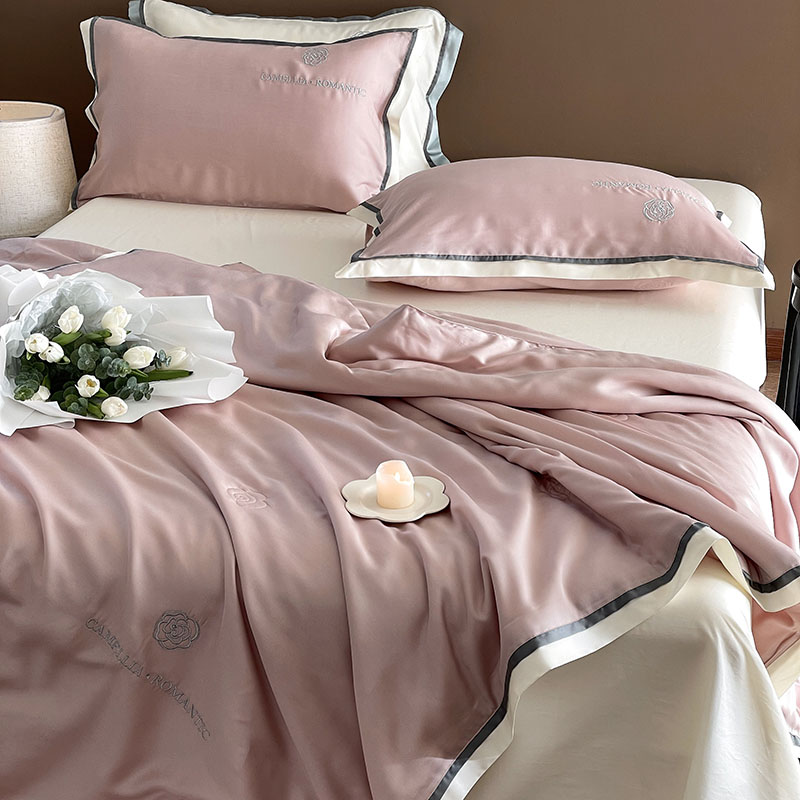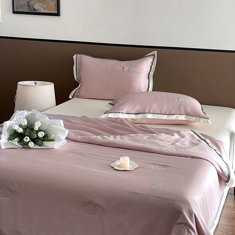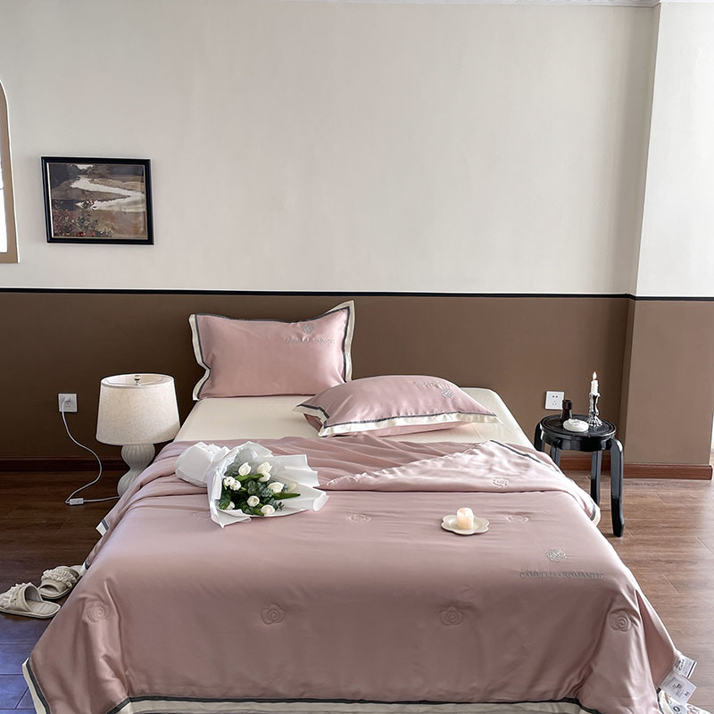 商品名称:汇庭 2023新款大豆蛋白纤维山茶花夏被 豆沙粉