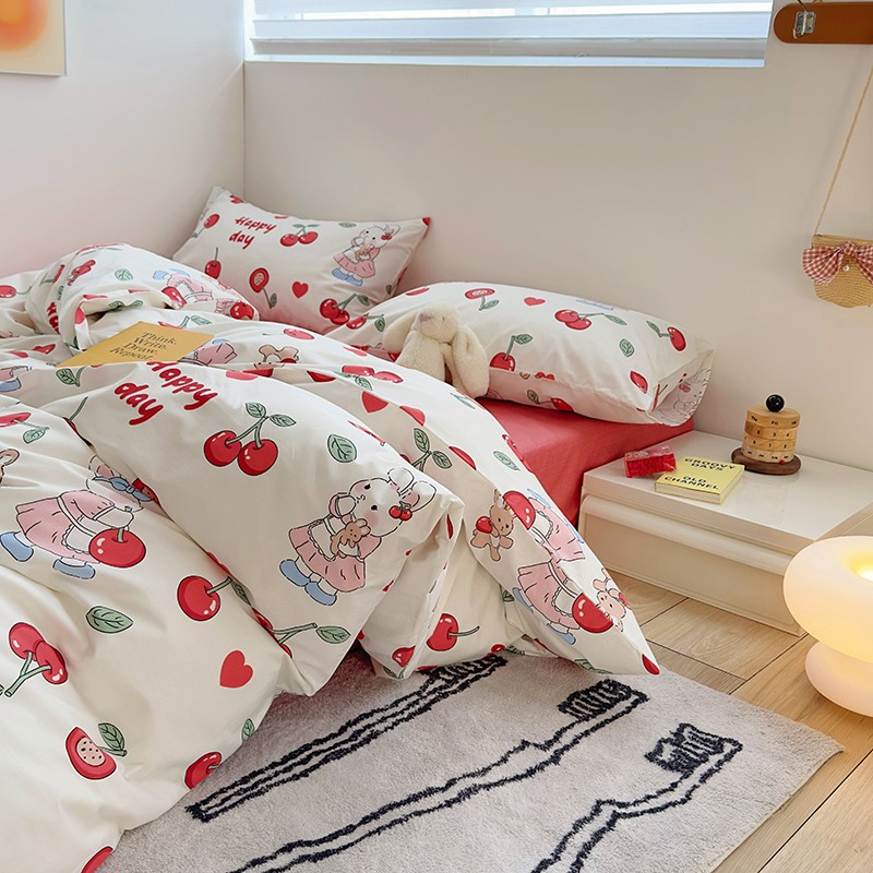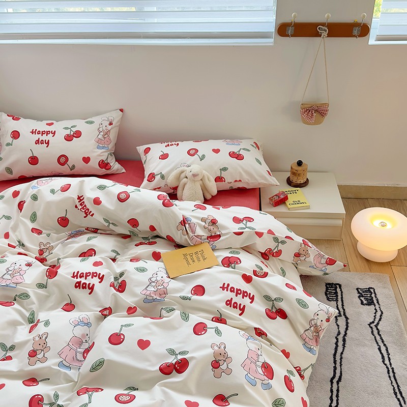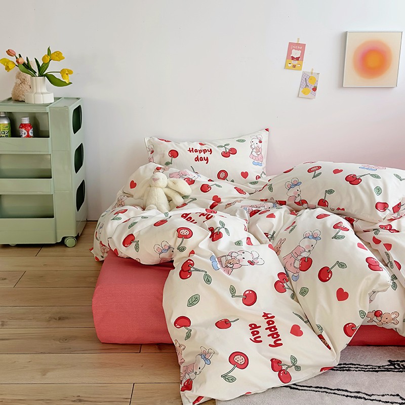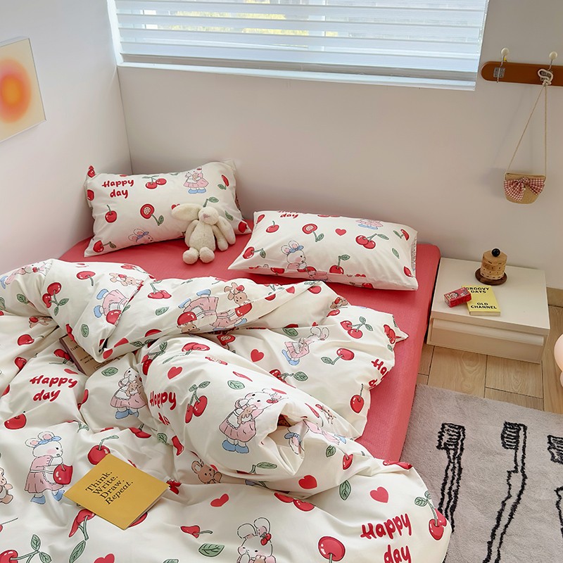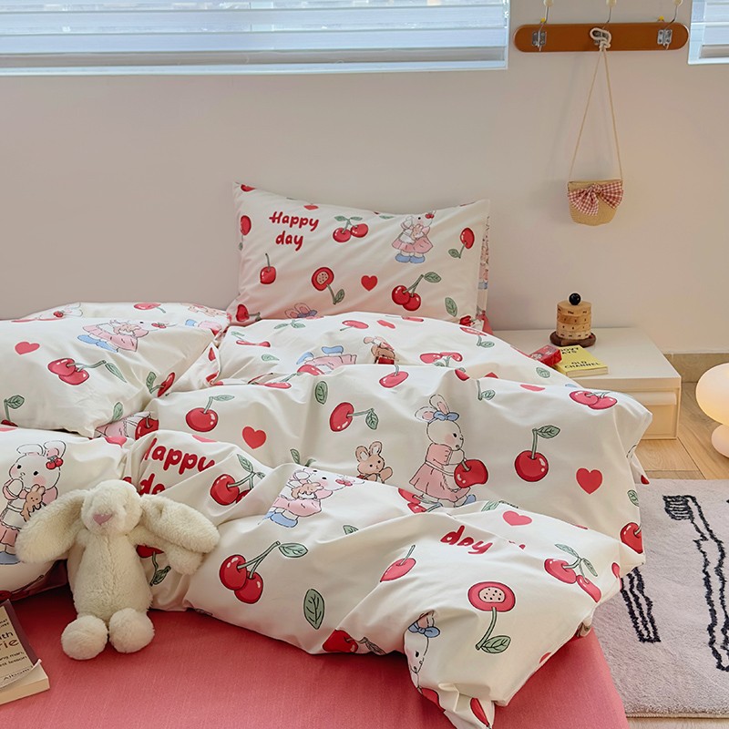 怡家居 2023春夏新款全棉卡通系列四件套 樱桃小兔