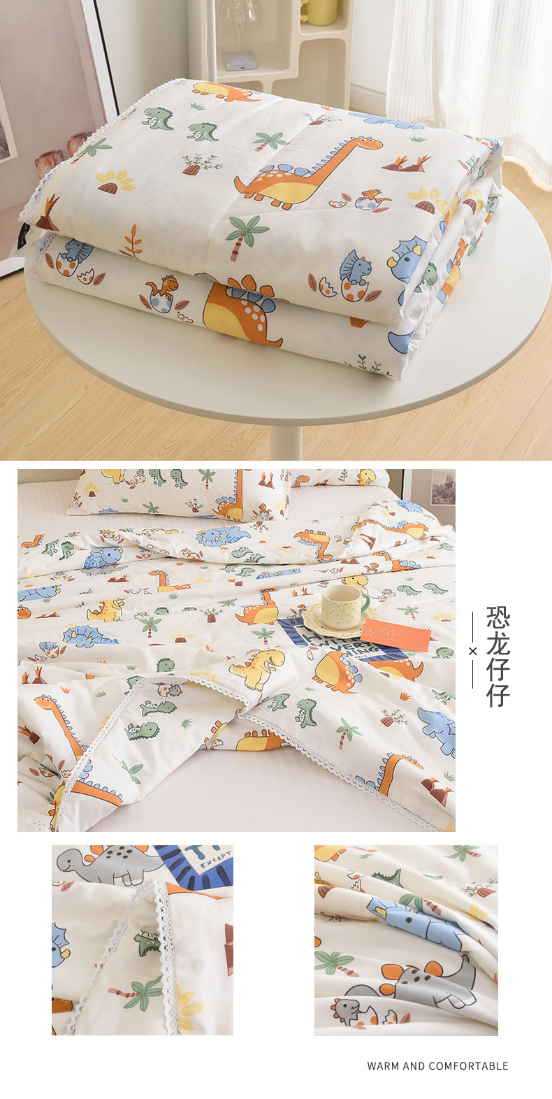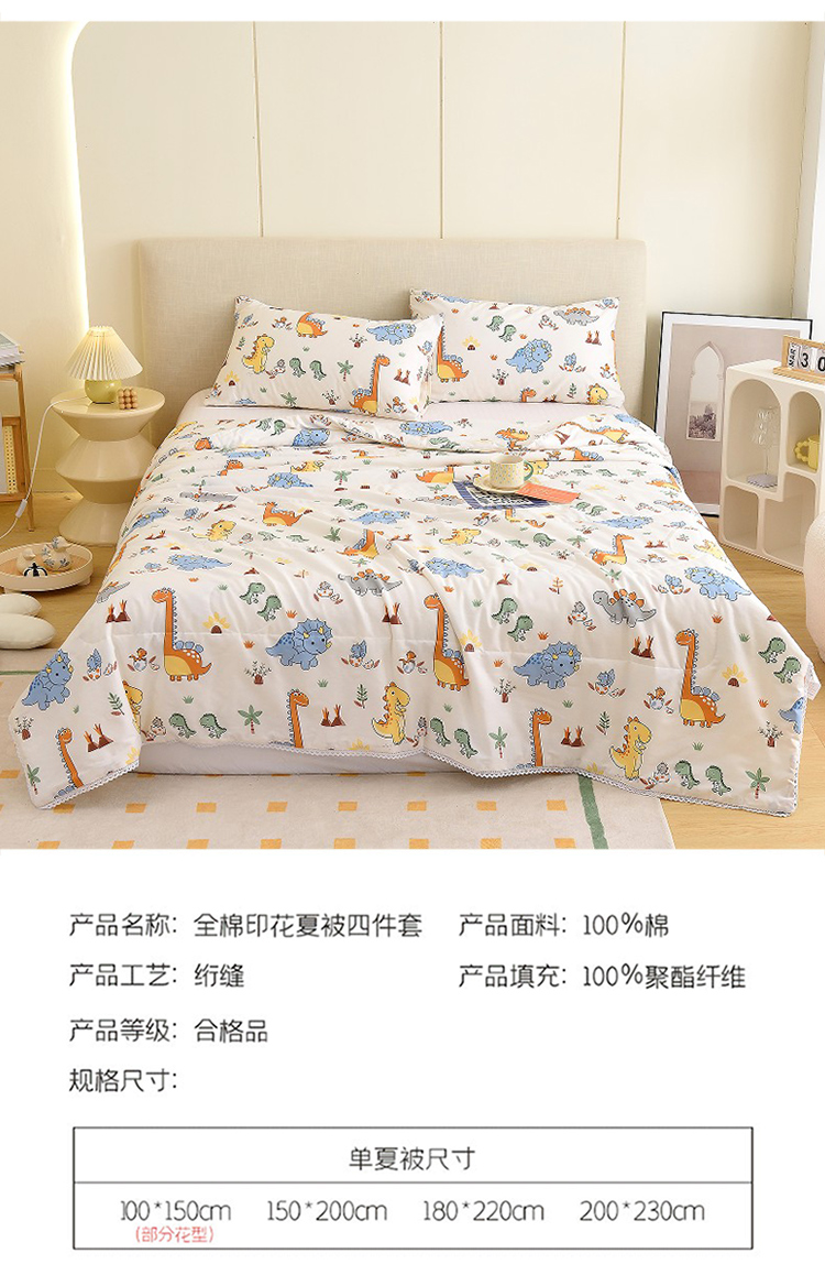 商品名称:德芙 2023新款全棉印花卡通夏被四件套 恐龙仔仔