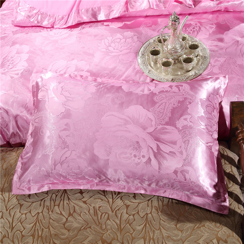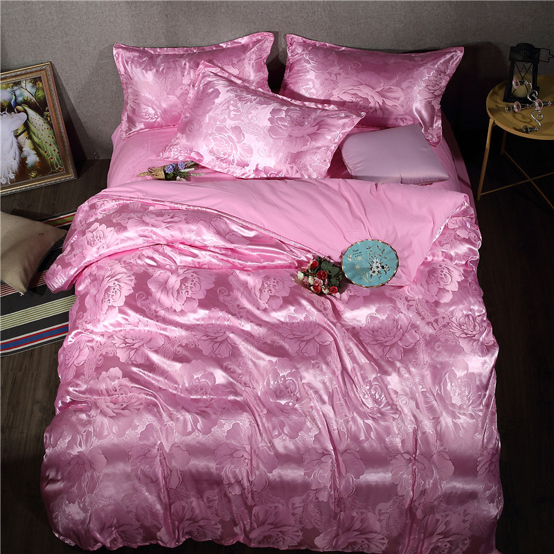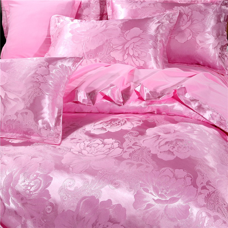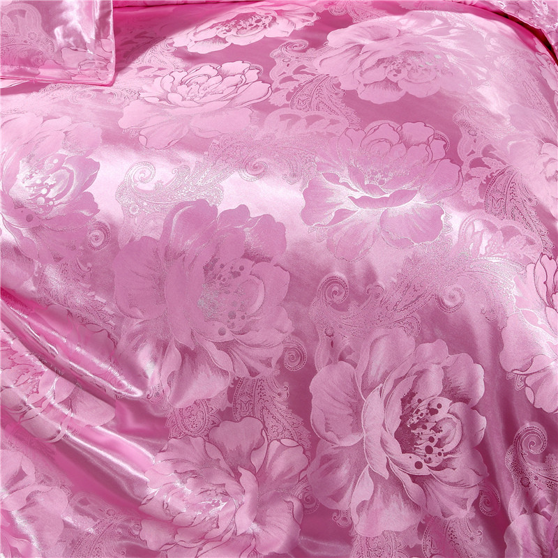 商品名称:2025新款贡缎提花四件套(简约款) 妙曼花彩(粉色)