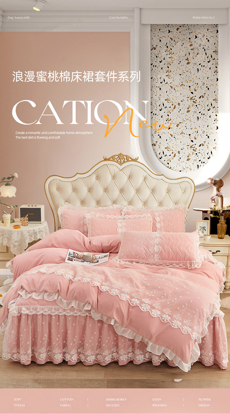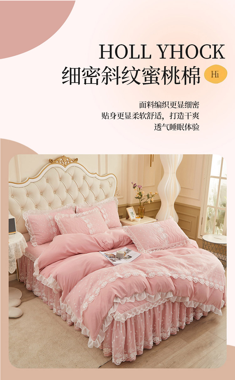 当前位置: 91家纺网 > 商品网购 > 床品套件 > 四件套 > 全棉普通四件套 > 恋尚 2023新款蜜桃棉夹棉床裙款四件套 花婷-粉色