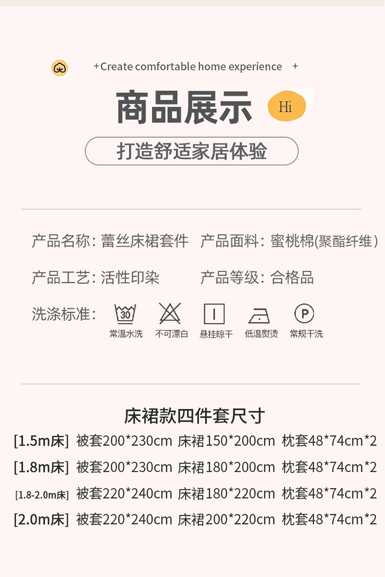 1.8m床裙款四件套(被套200*230cm床裙180*200cm枕套48*74cm*2) | ¥195.00 |