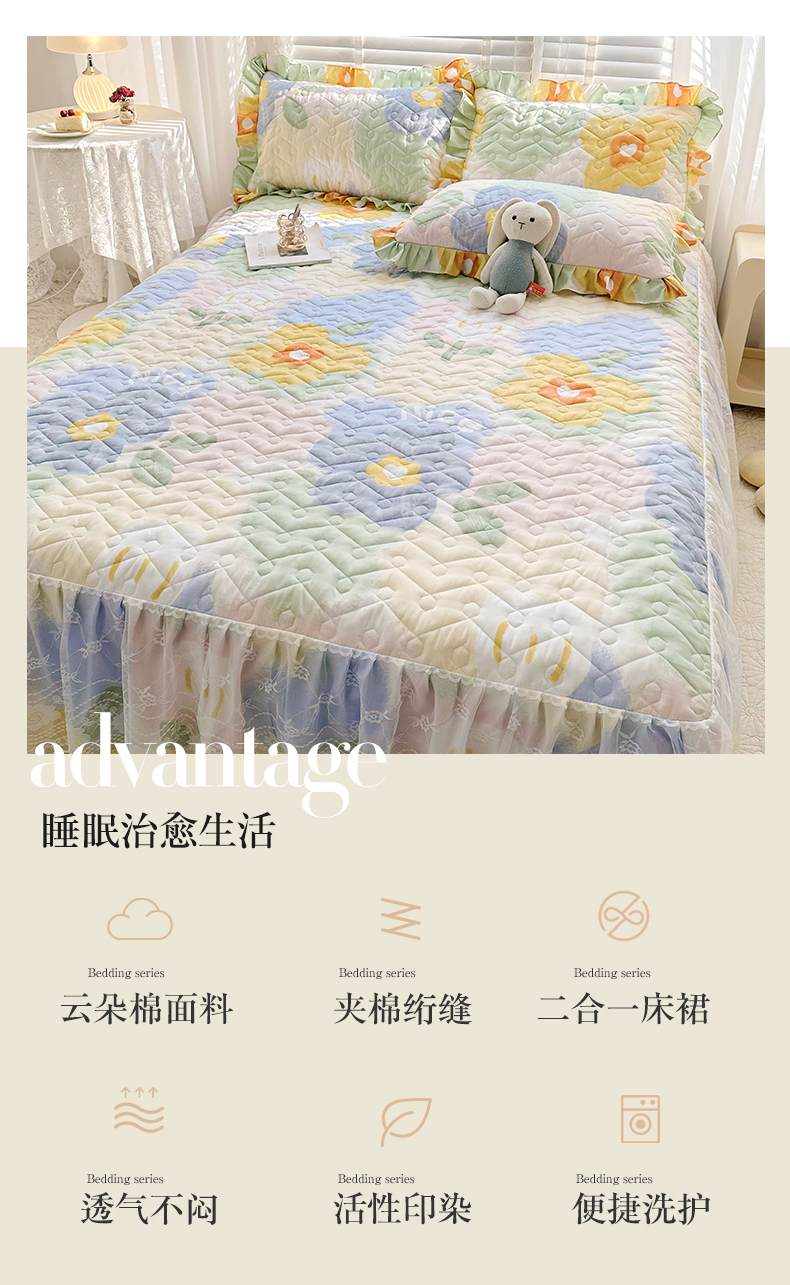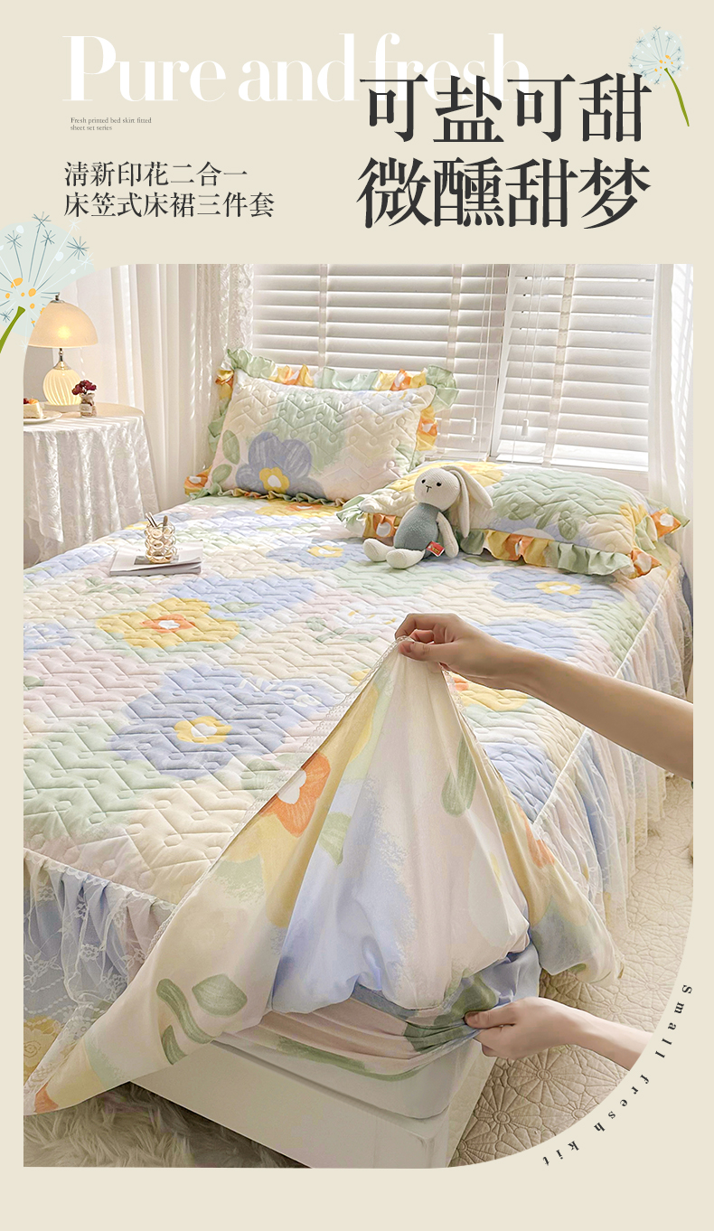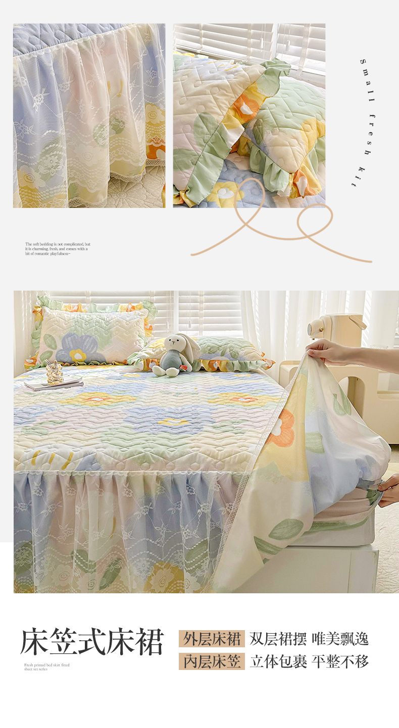当前位置: 91家纺网 > 商品网购 > 床品套件 > 三件套 > 宜凡 2023新款云朵棉床笠式床裙三件套 米娅