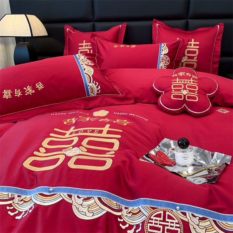当前位置: 91家纺网 > 商品网购 > 床品套件 > 多件套 > 多件套 > (总)江涞 2023新款高端刺绣长绒棉婚庆四件套七件套