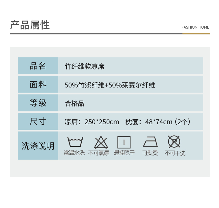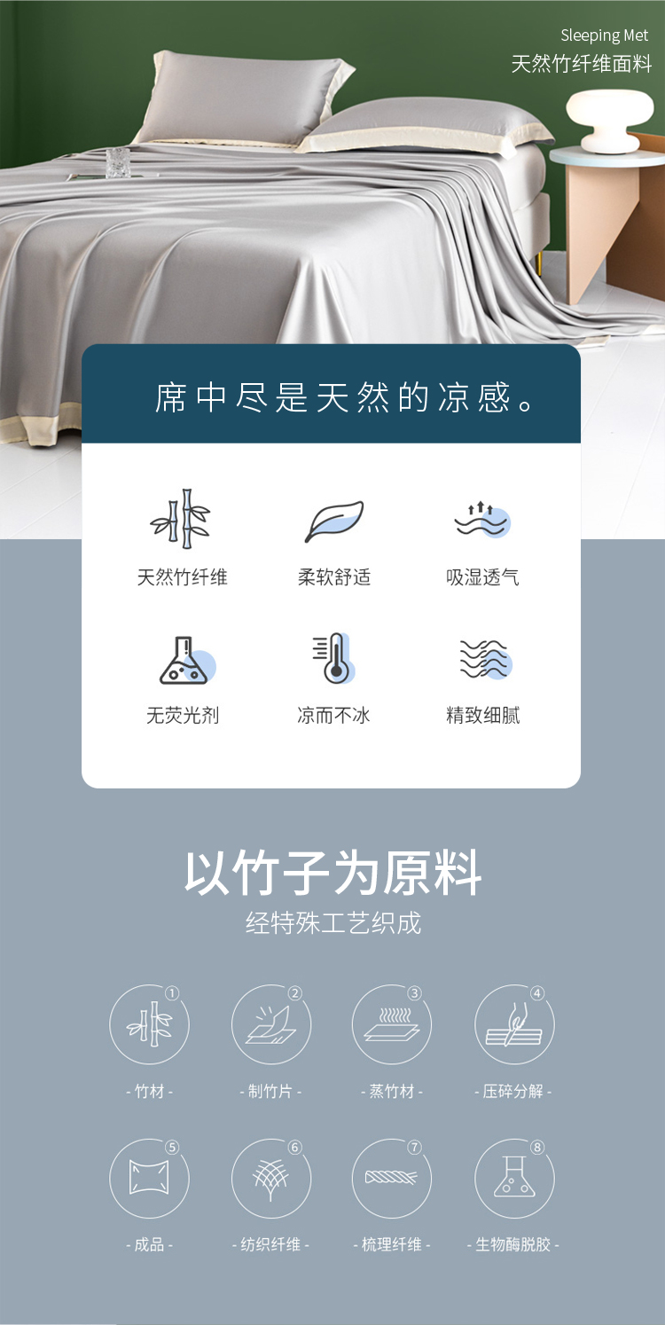 商品名称:席世家 2023新款金太阳竹纤维软凉席三件套 竹纤维-灰