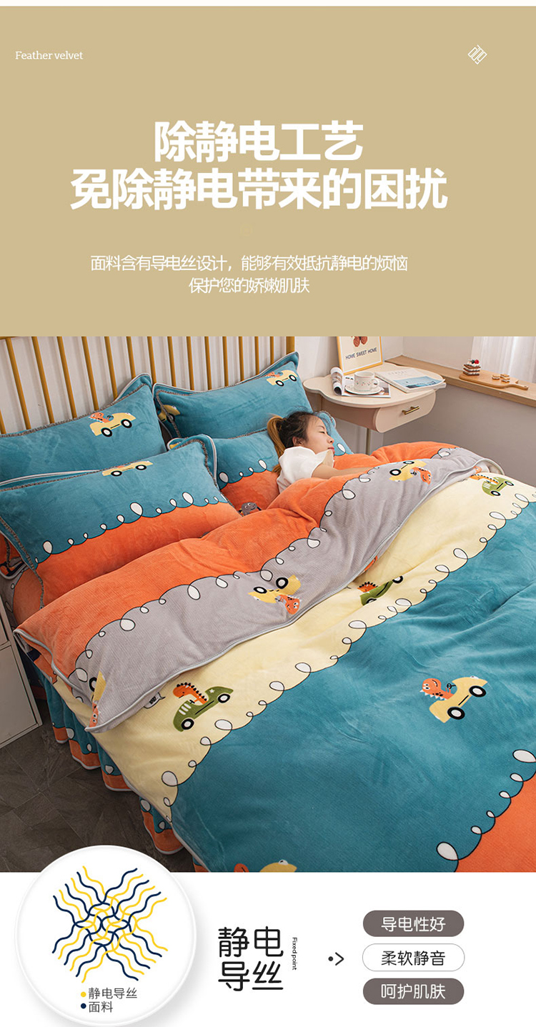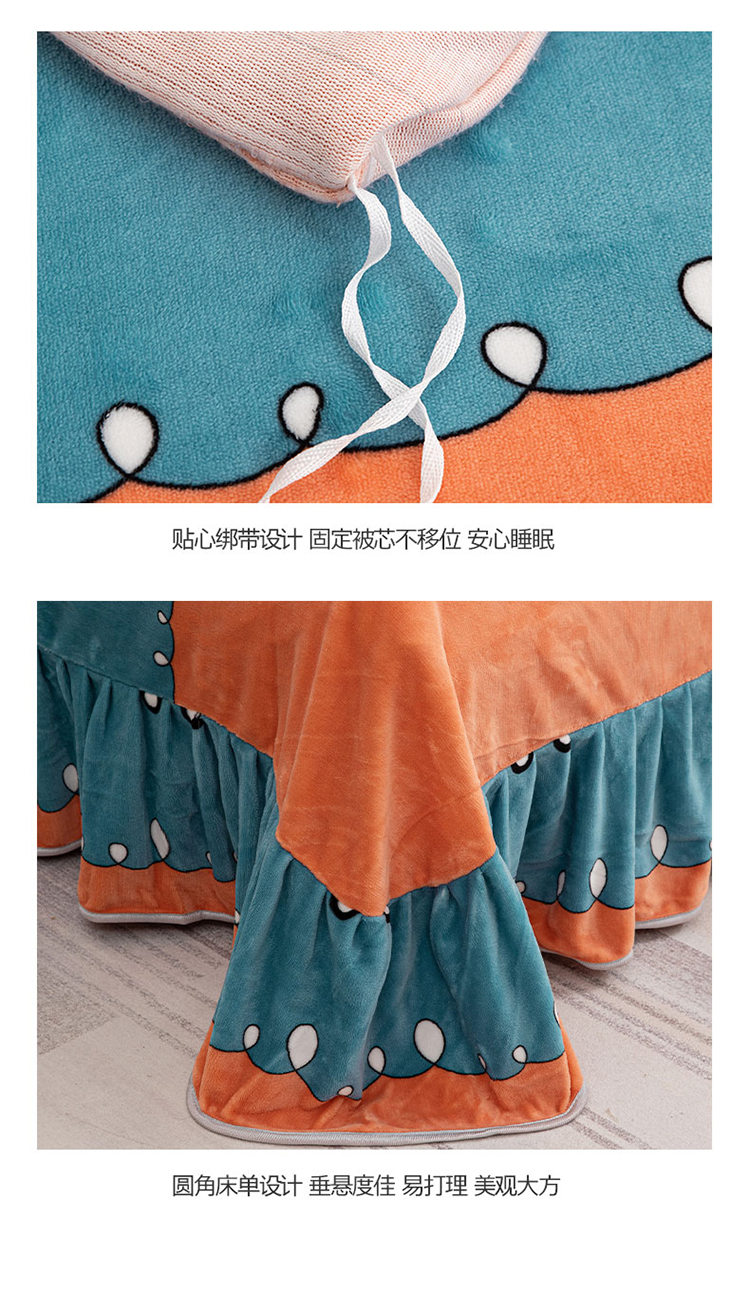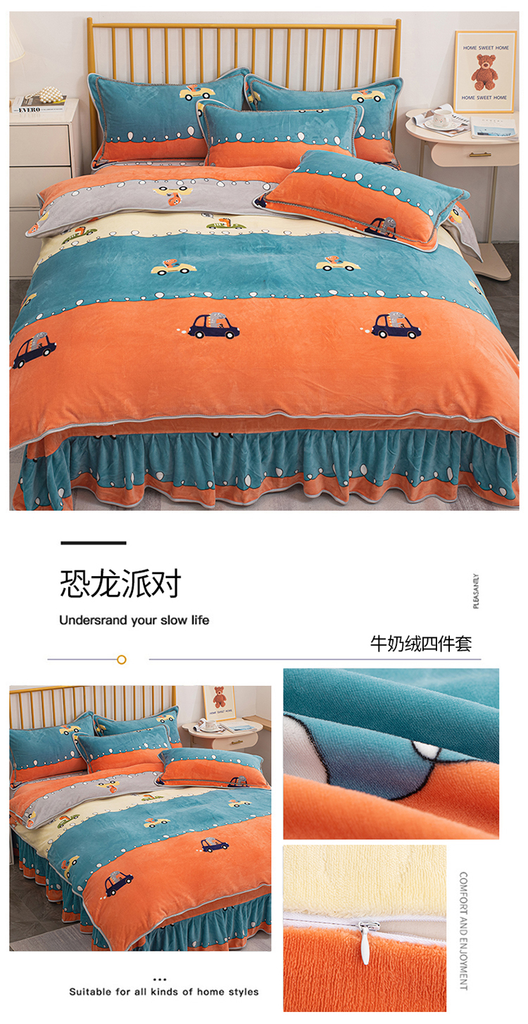 商品名称:登登家纺 加厚印花牛奶金貂法莱宝宝绒四件套 恐龙派对