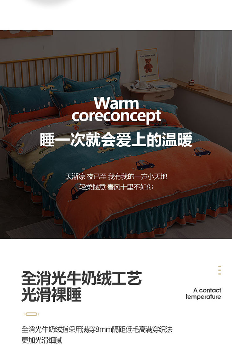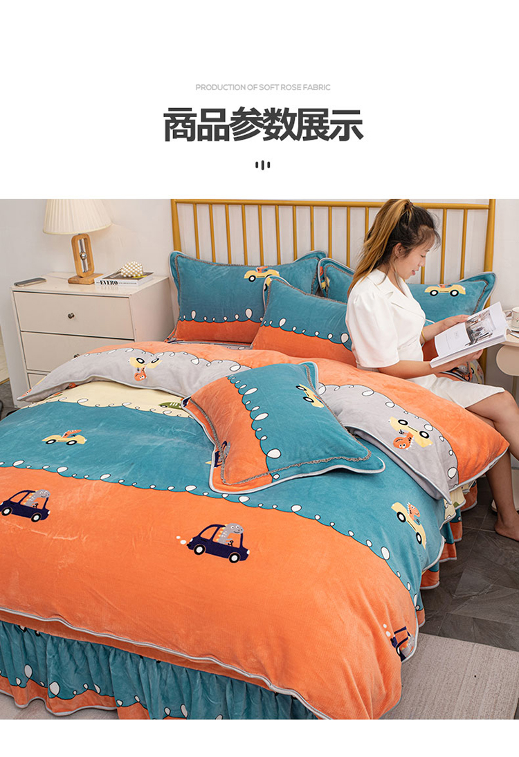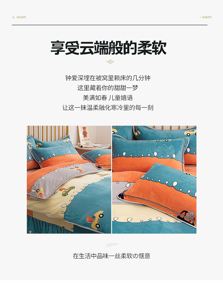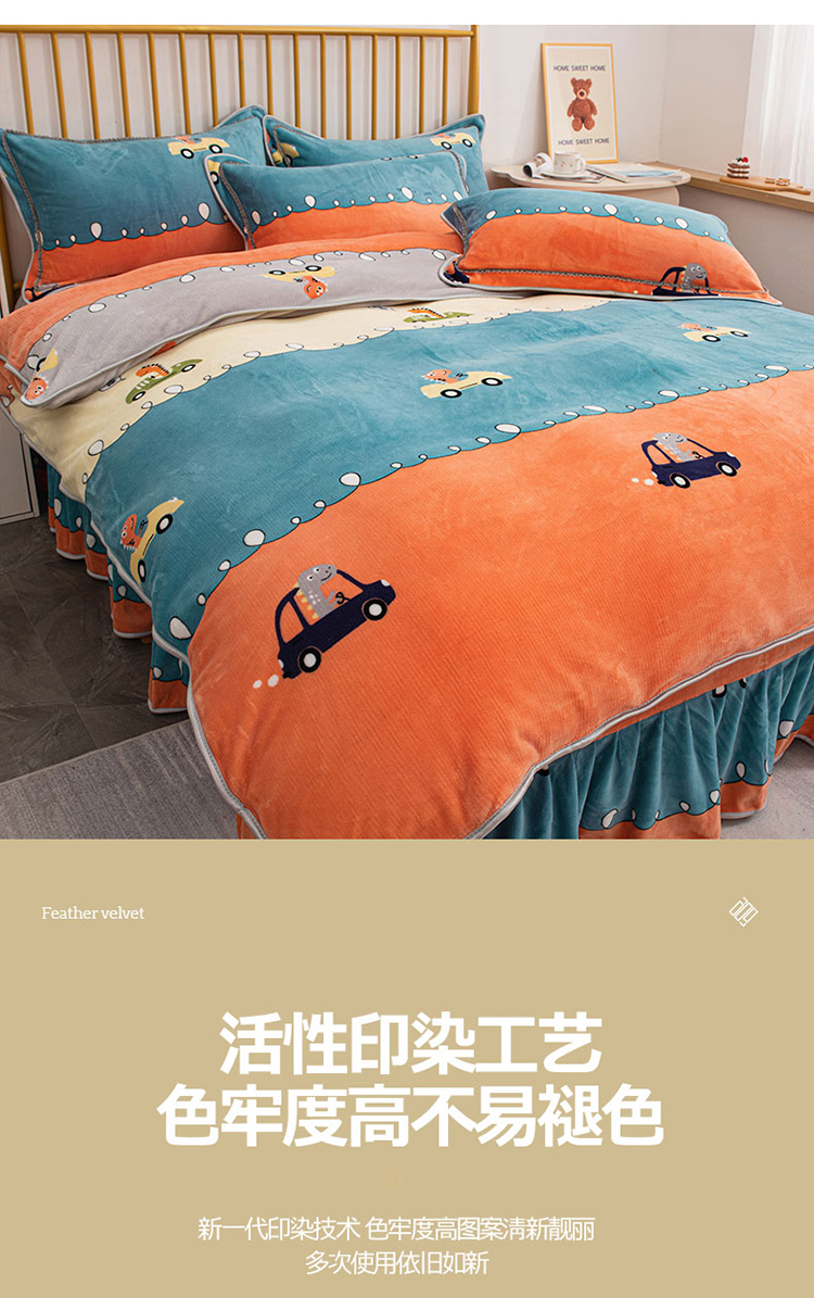 商品名称:登登家纺 加厚印花牛奶金貂法莱宝宝绒四件套 恐龙派对