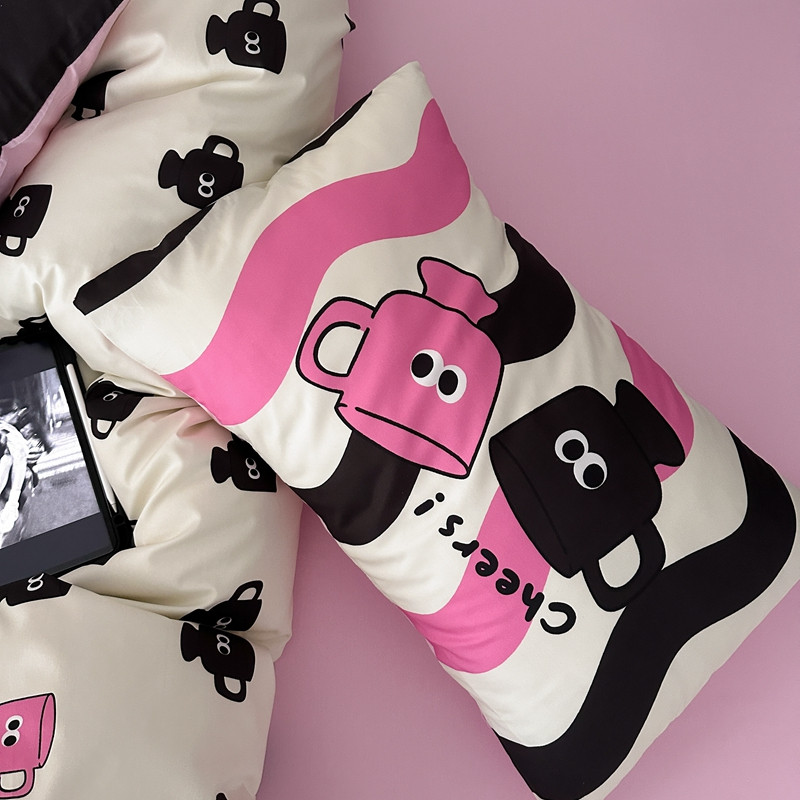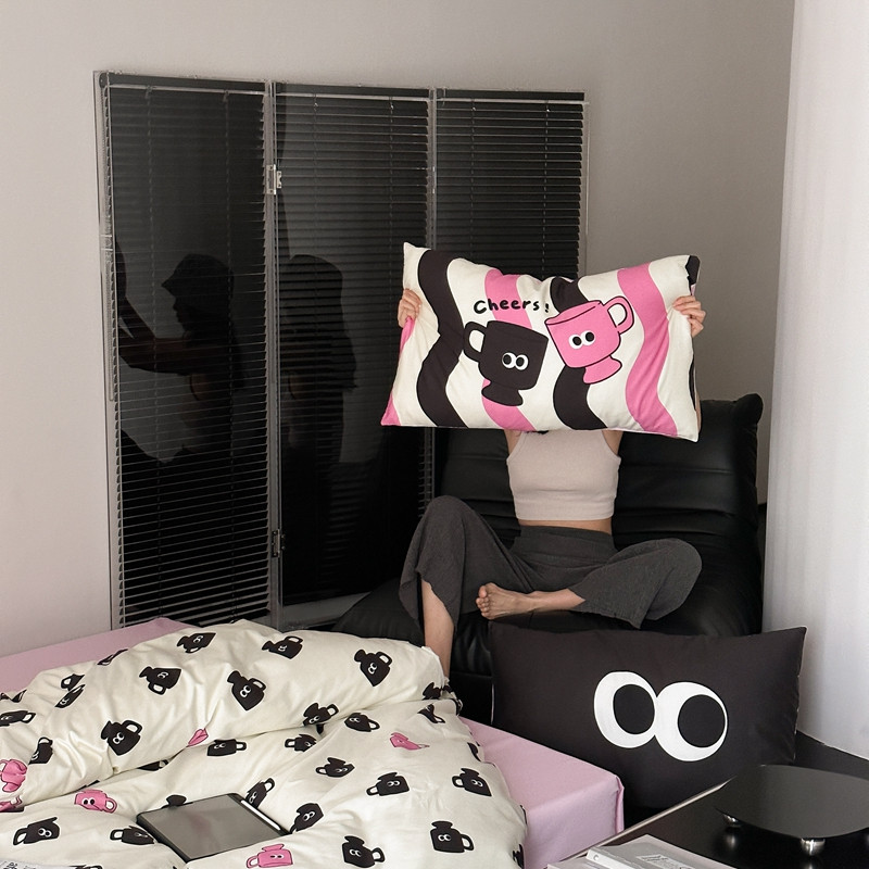 桃喜2024新款甜辣潮酷数码印花大版全棉枕套 大版-粉色马克杯