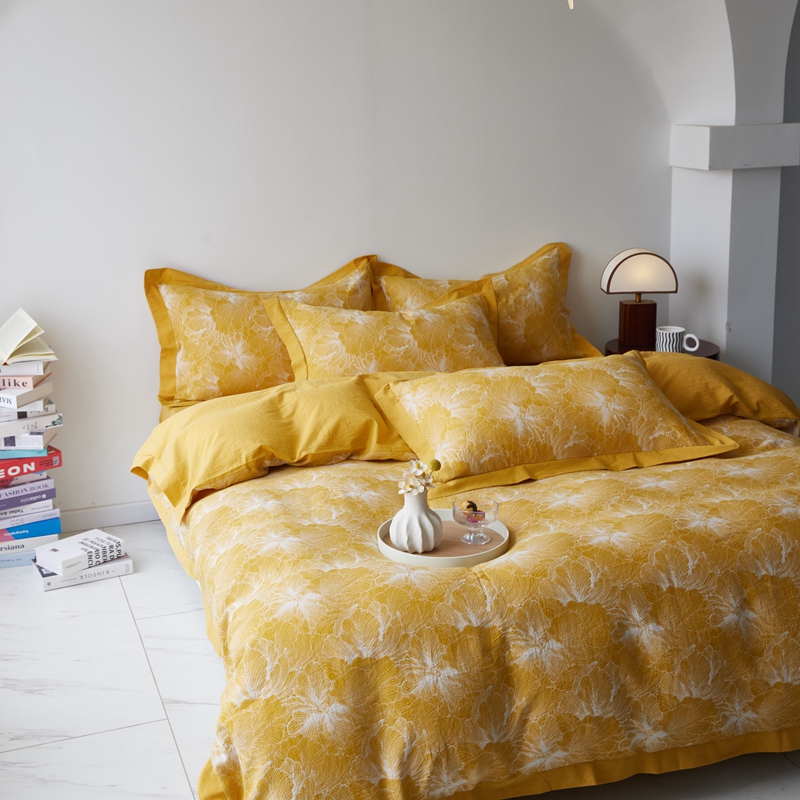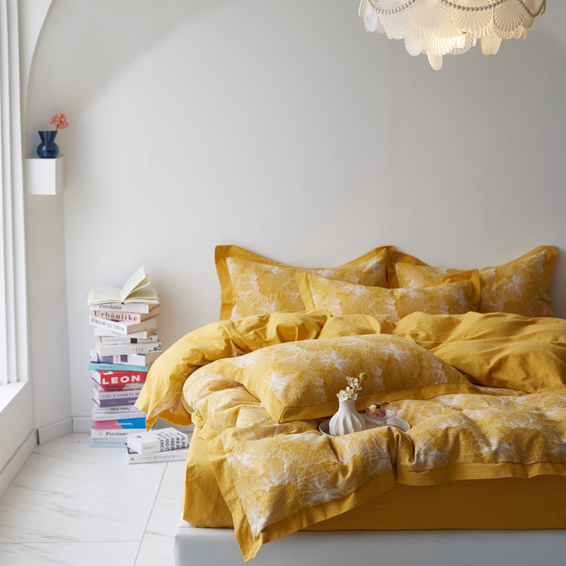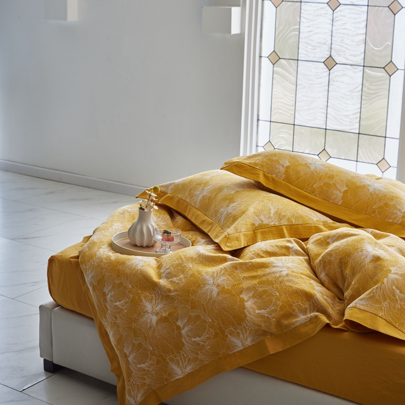 当前位置: 91家纺网 > 商品网购 > 床品套件 > 四件套 > 全棉普通四件套 > 安莱生活 2023新品双层纱大提花高奢工艺款四件套-国色天香系列 国色天香--姜黄