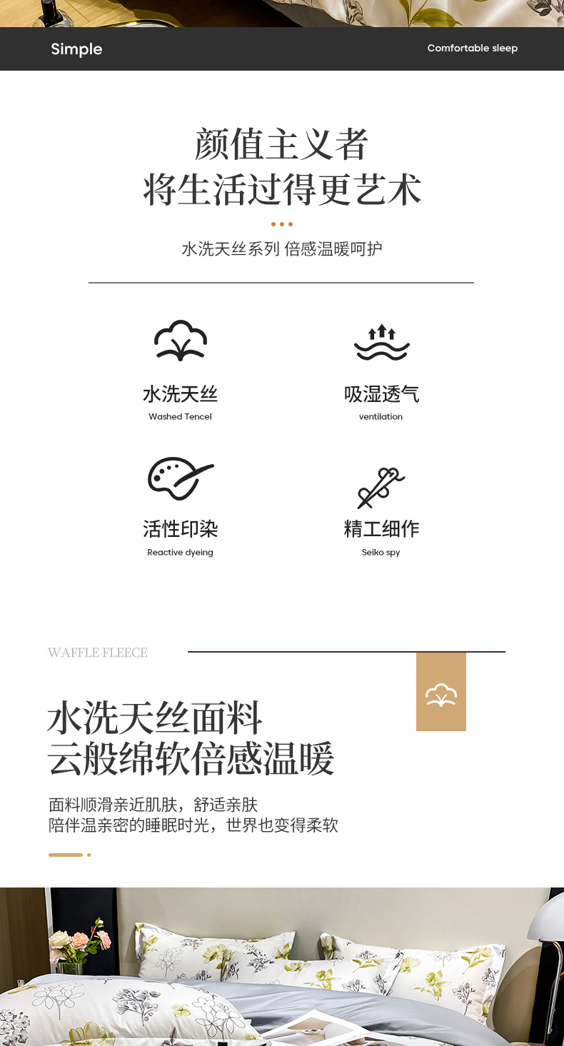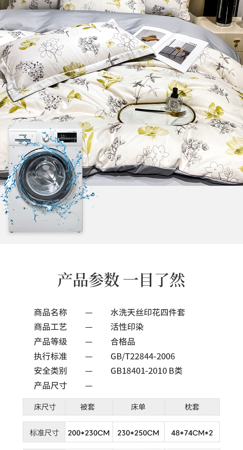 商品名称:红日子纺织品 2023新款水洗真丝印花四件套 宁夏