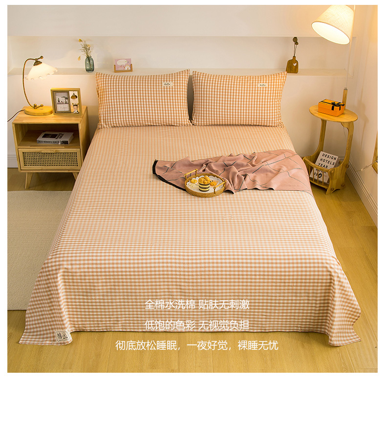 柠萌家居 2023最新无印良品风格A类全棉色织水洗棉单床单 蜜粉小格