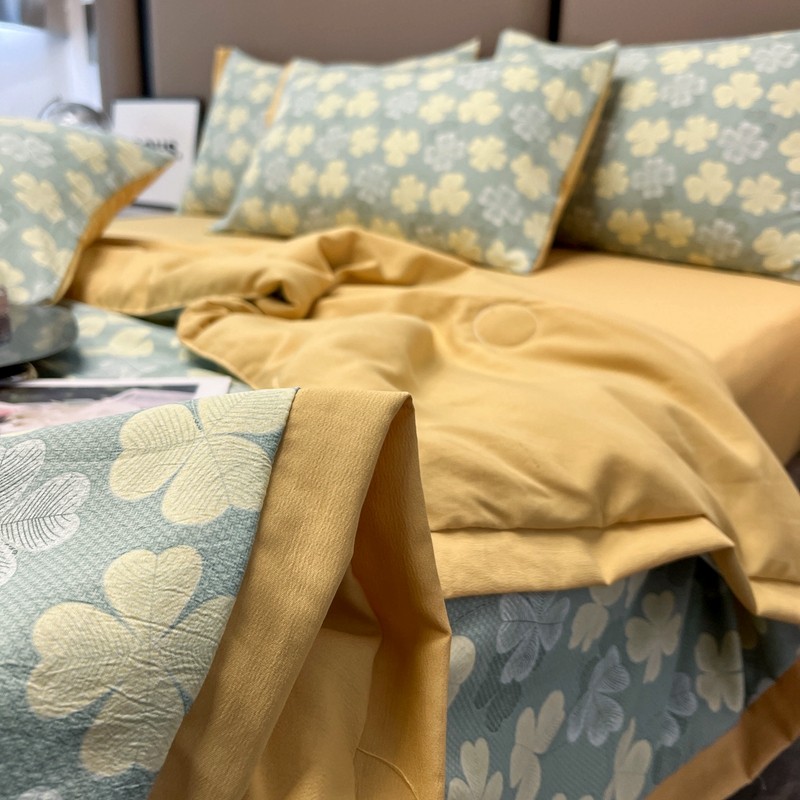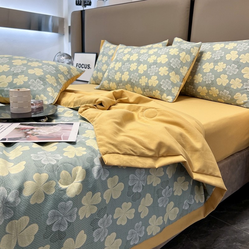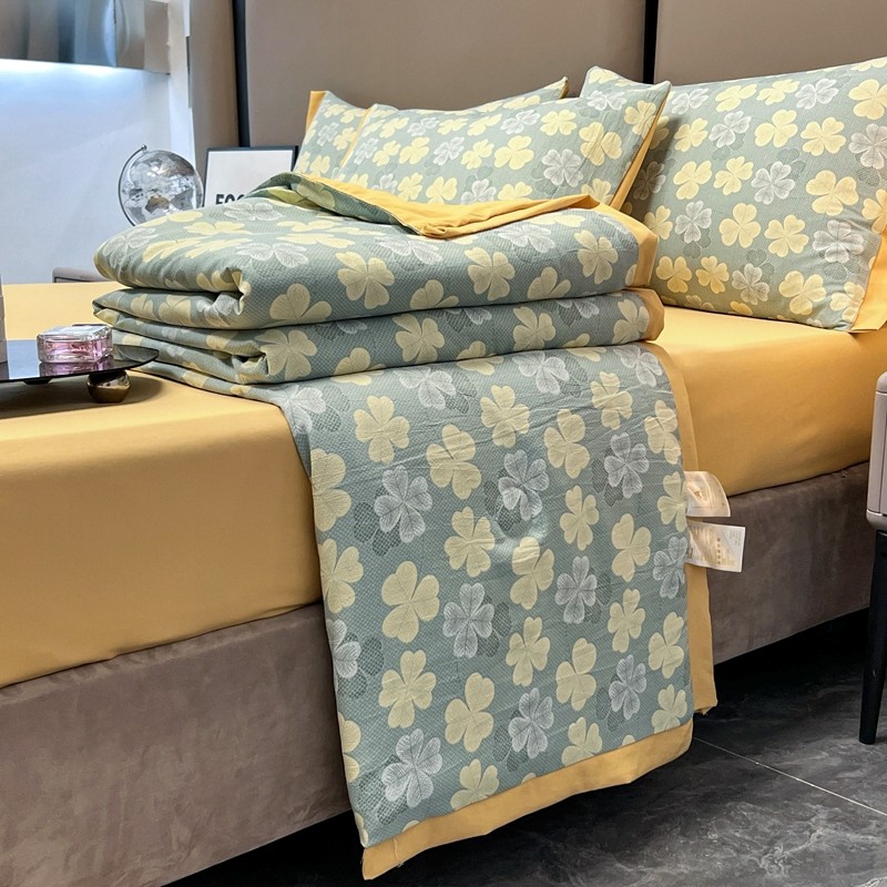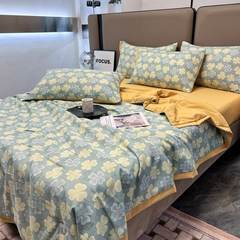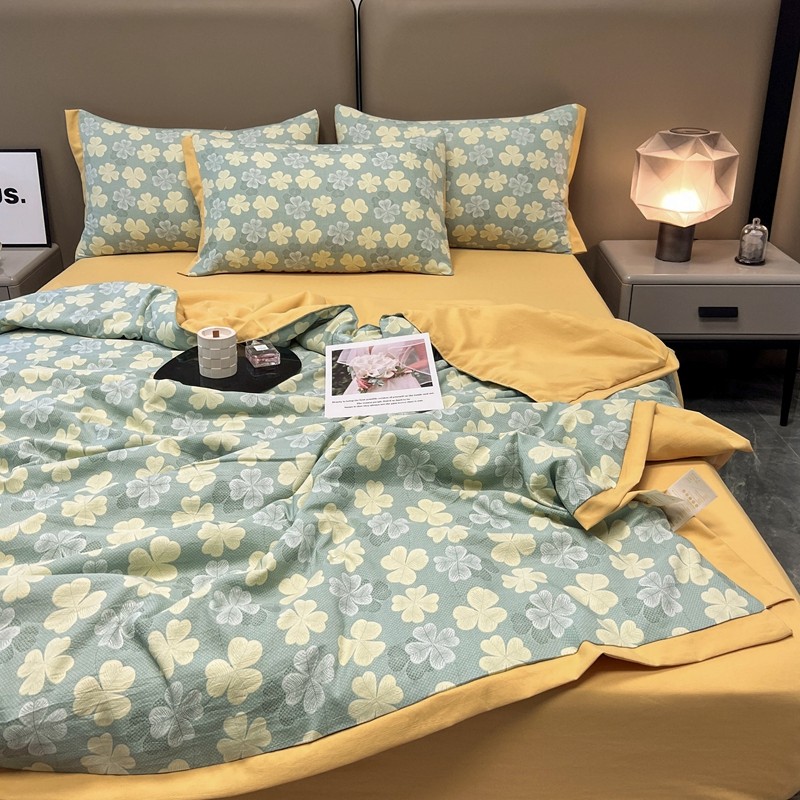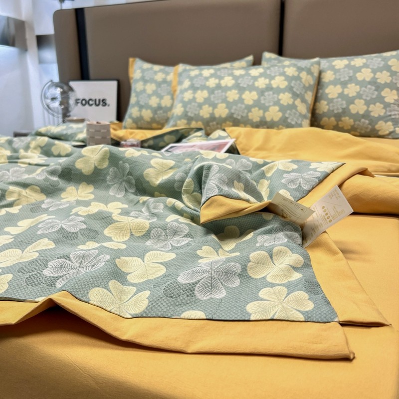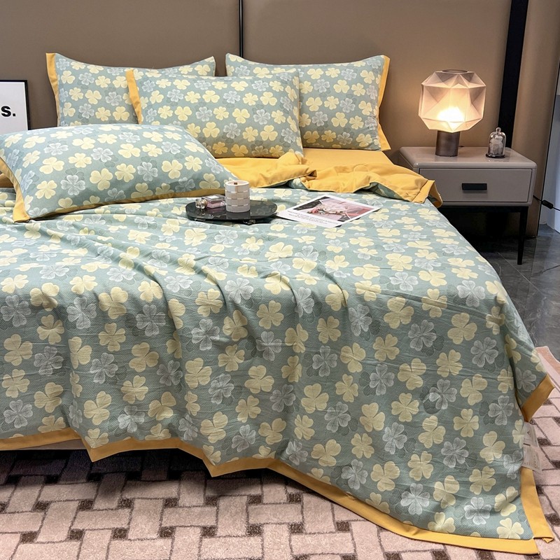 商品名称:慕尚 2025新款水洗棉麻夏被四件套 四叶草