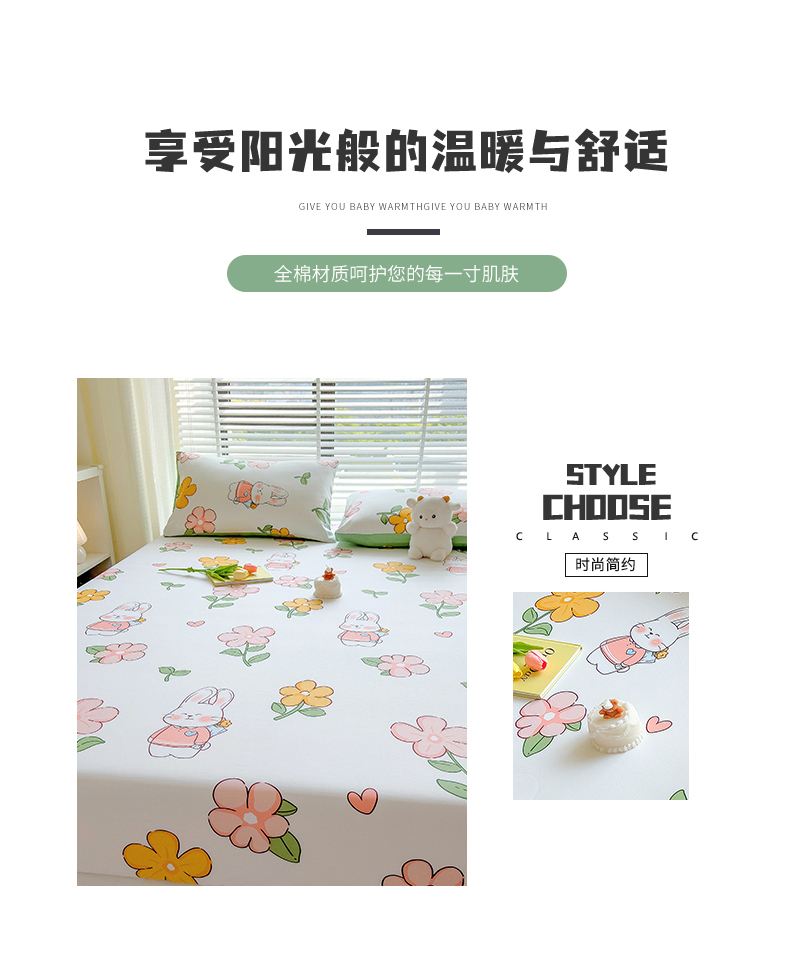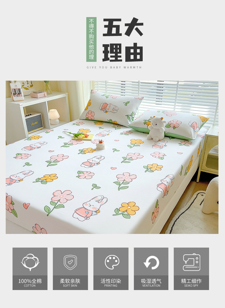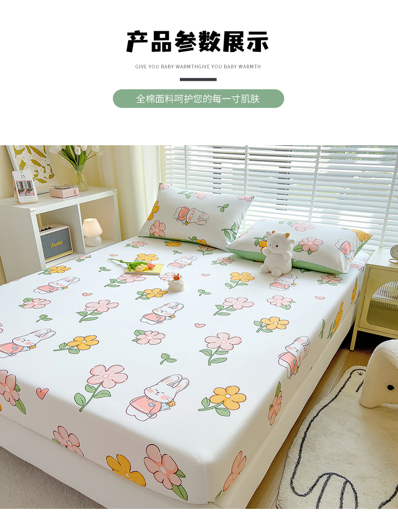 商品名称:芃成家纺 2023新款全棉13070单床笠 时尚小兔