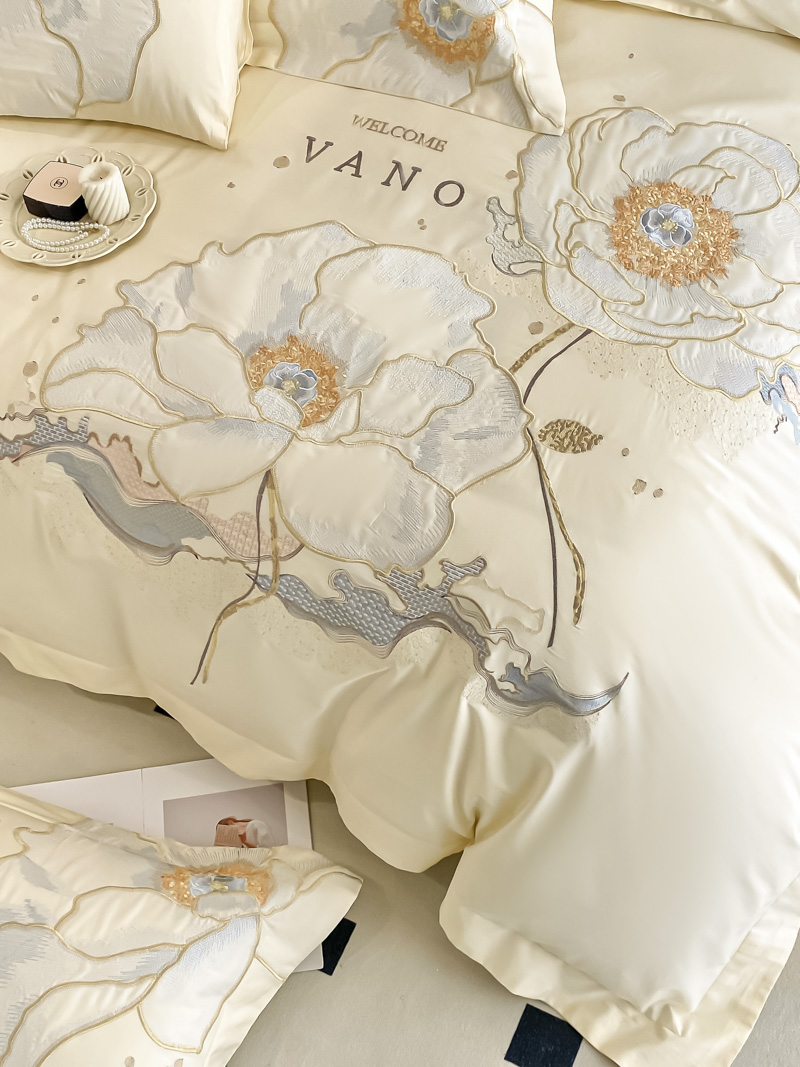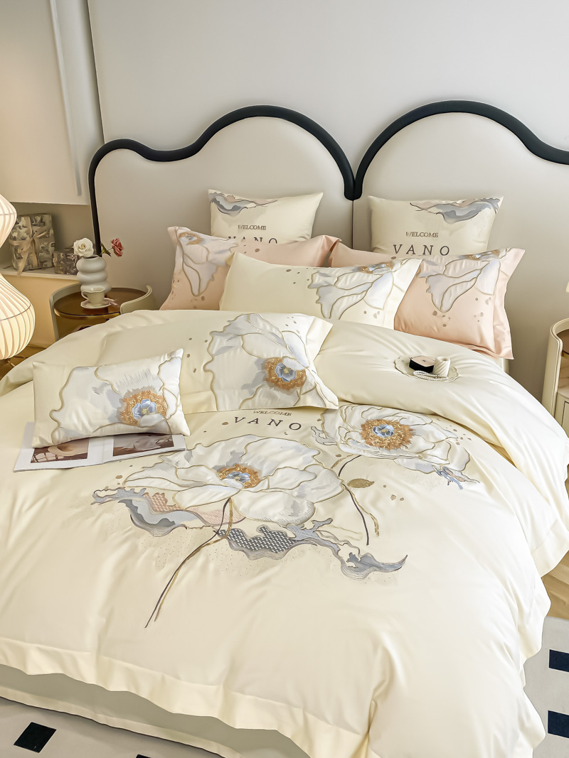 (总)品家居 2025新款180支长绒棉绣花四件套露珠,露珠-香槟色,露珠-紫灰