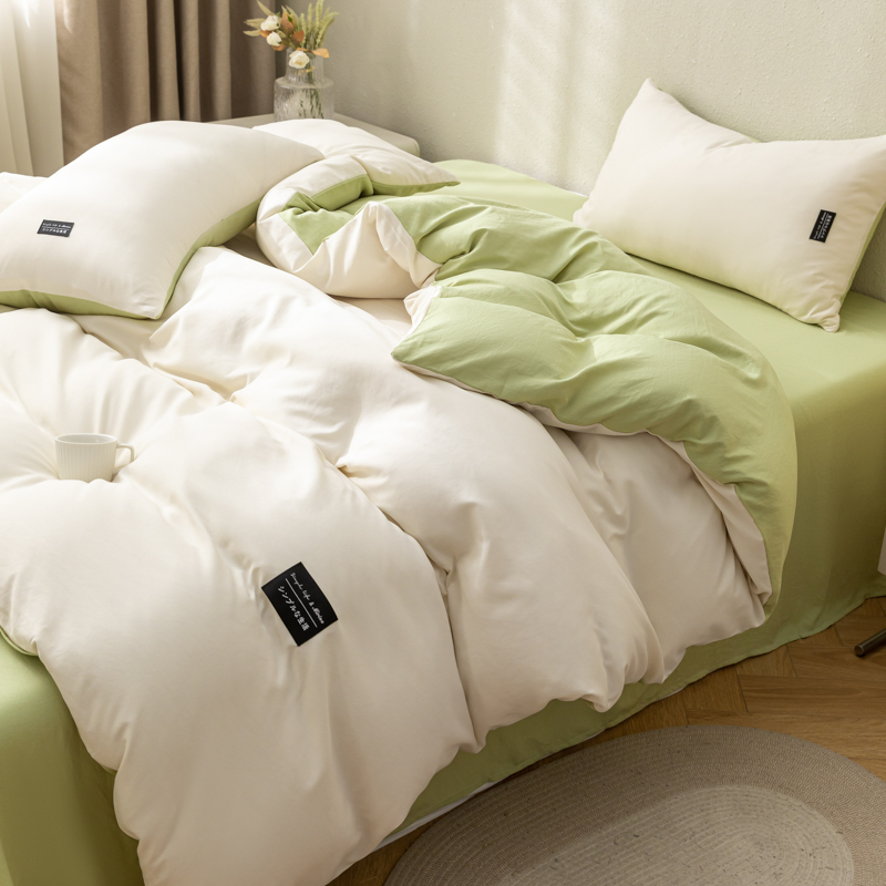 (总)米瑞娜 2024新款 水洗棉麻双拼纯色四件套,白+豆绿,冰粉+自然绿,黛粉+浅灰,丁香紫+西梅粉,豆绿+冰粉,橄榄绿+奶油,高级灰,奶白+冰粉,奶白+淡蓝,雾蓝+淡蓝,中灰+奶茶,抹茶+奶油,奶茶+芝士