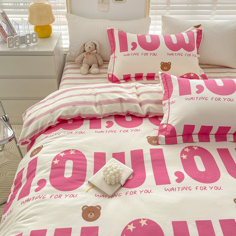 乐童2024新款吊边款牛奶绒四件套 爱意满满,爱意满满