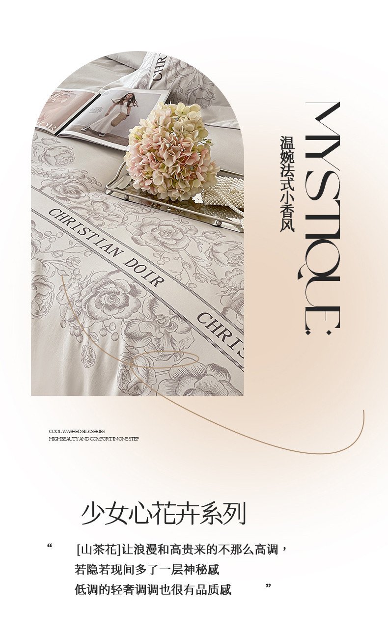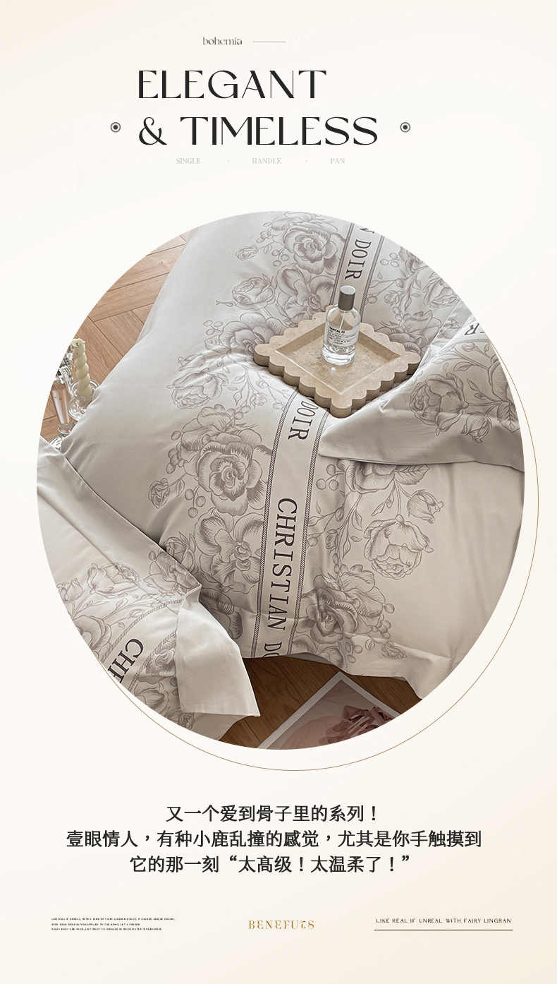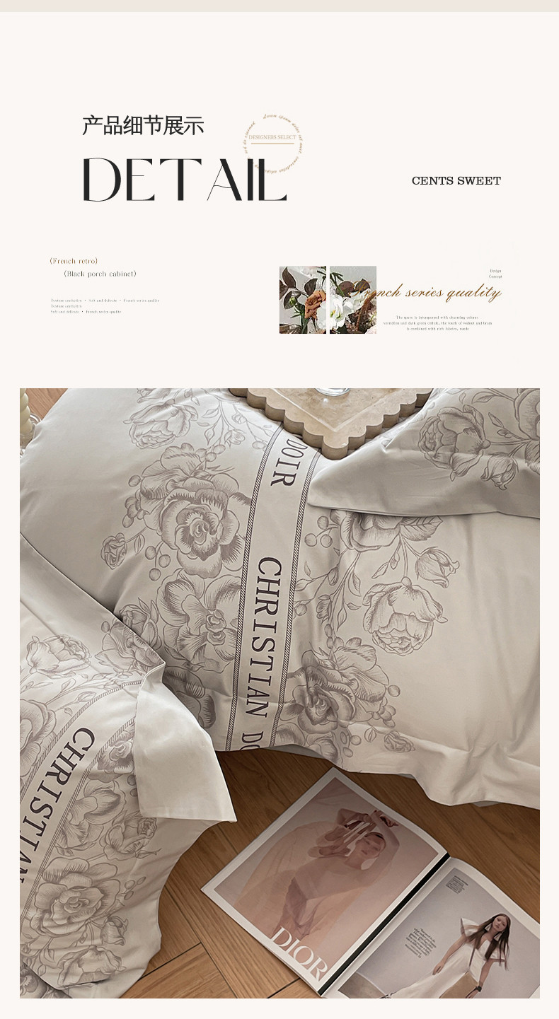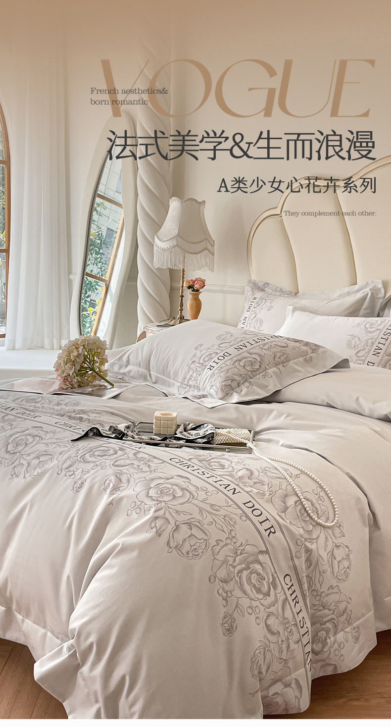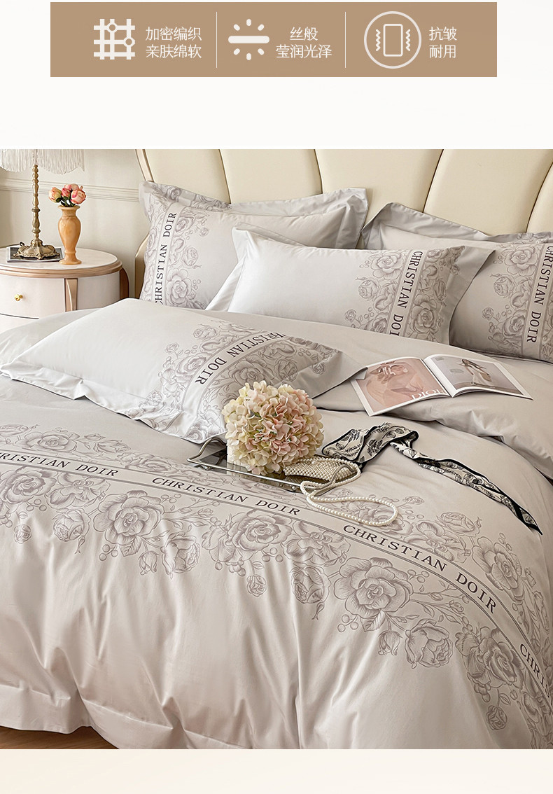 商品名称:蓝米卡夫2024新款A类少女心花卉数码系列四件套-花漾 花漾-灰