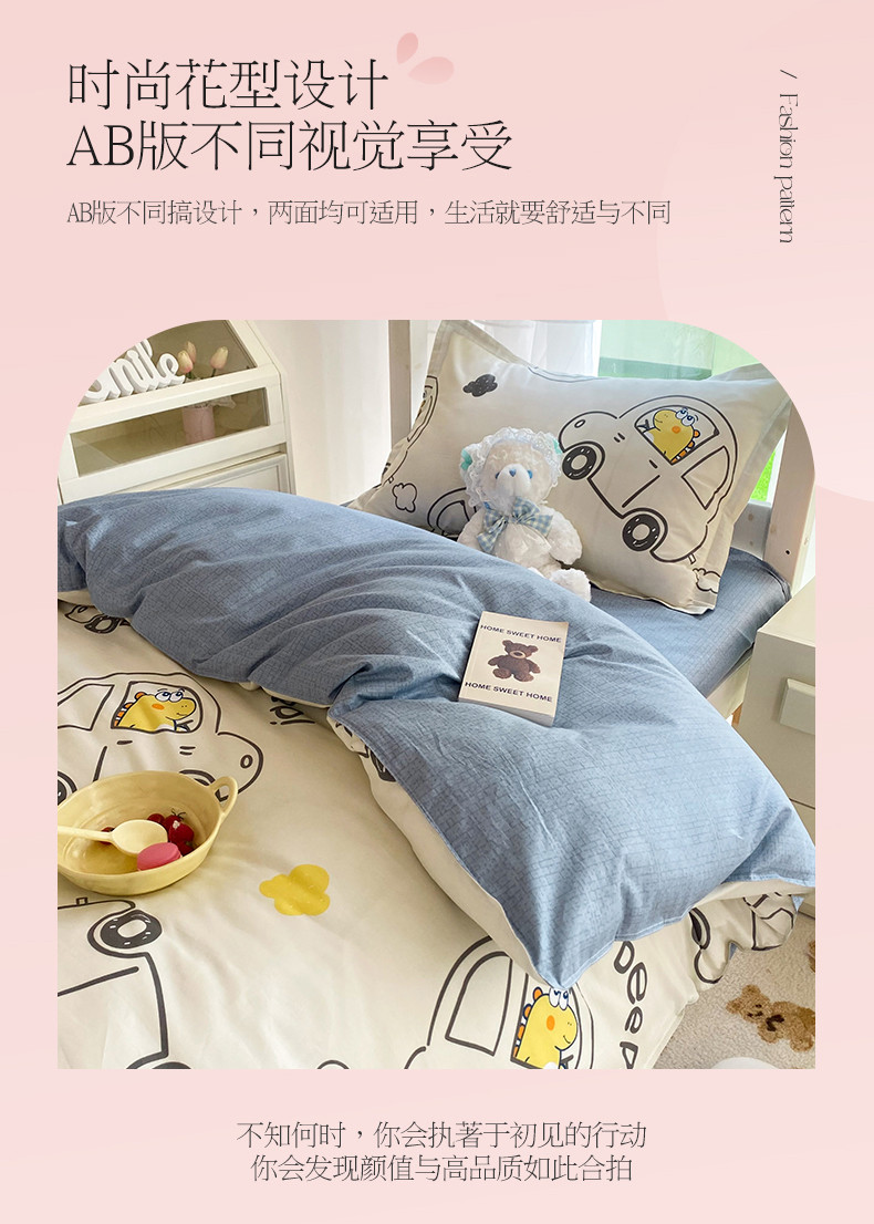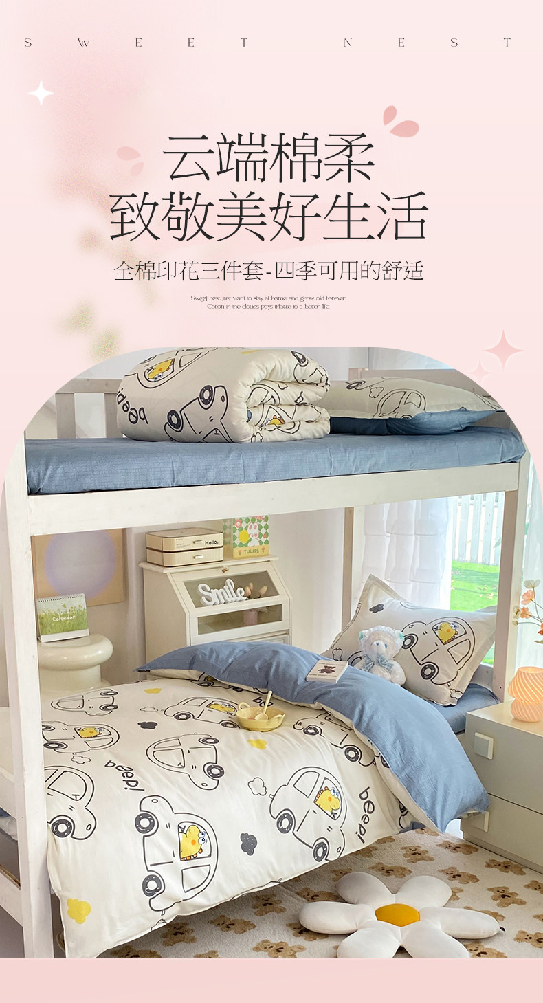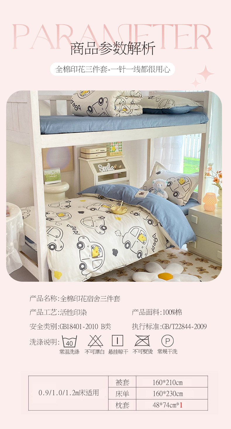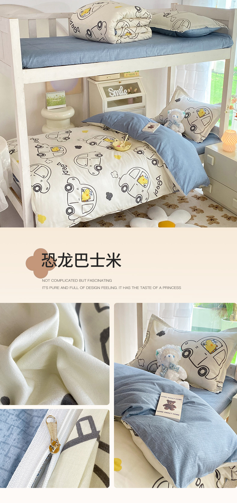 多品 2023新款12868全棉宿舍三件套-第二批 恐龙巴士米