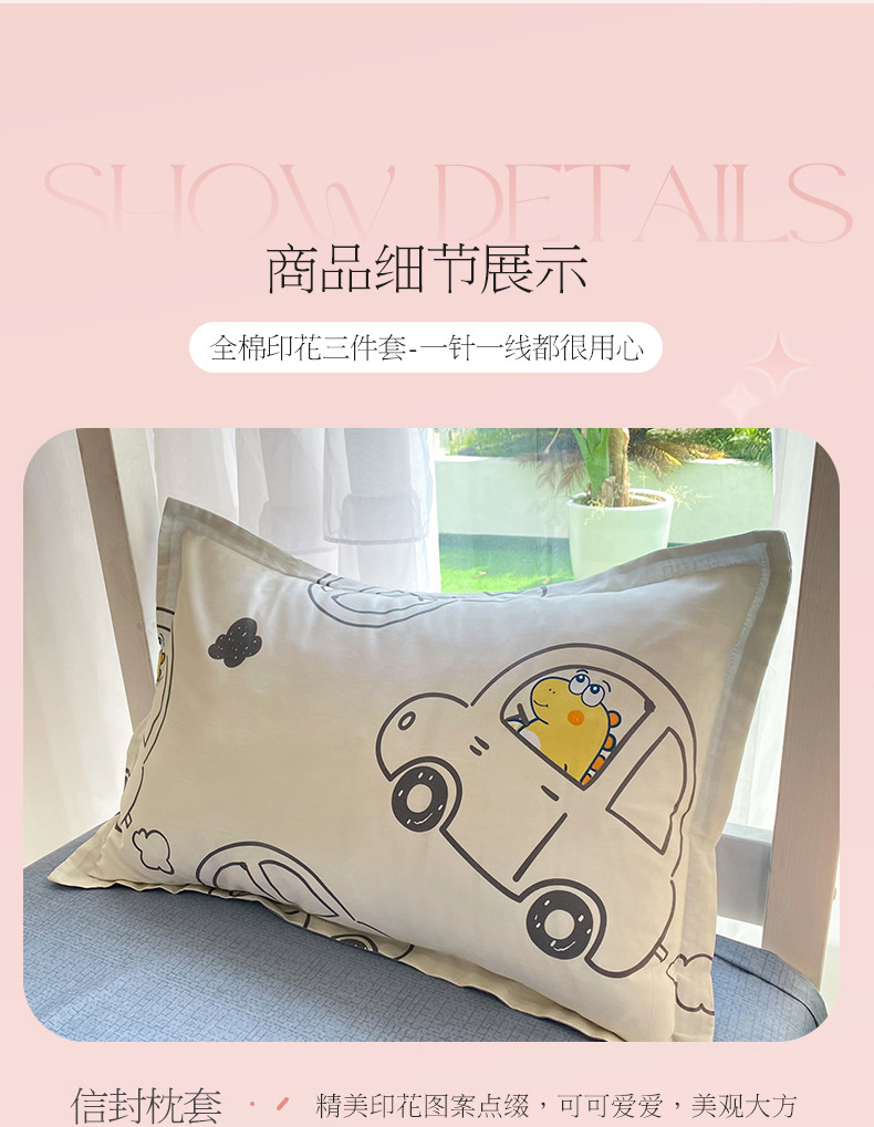 商品名称:多品 2023新款12868全棉宿舍三件套-第二批 恐龙巴士米