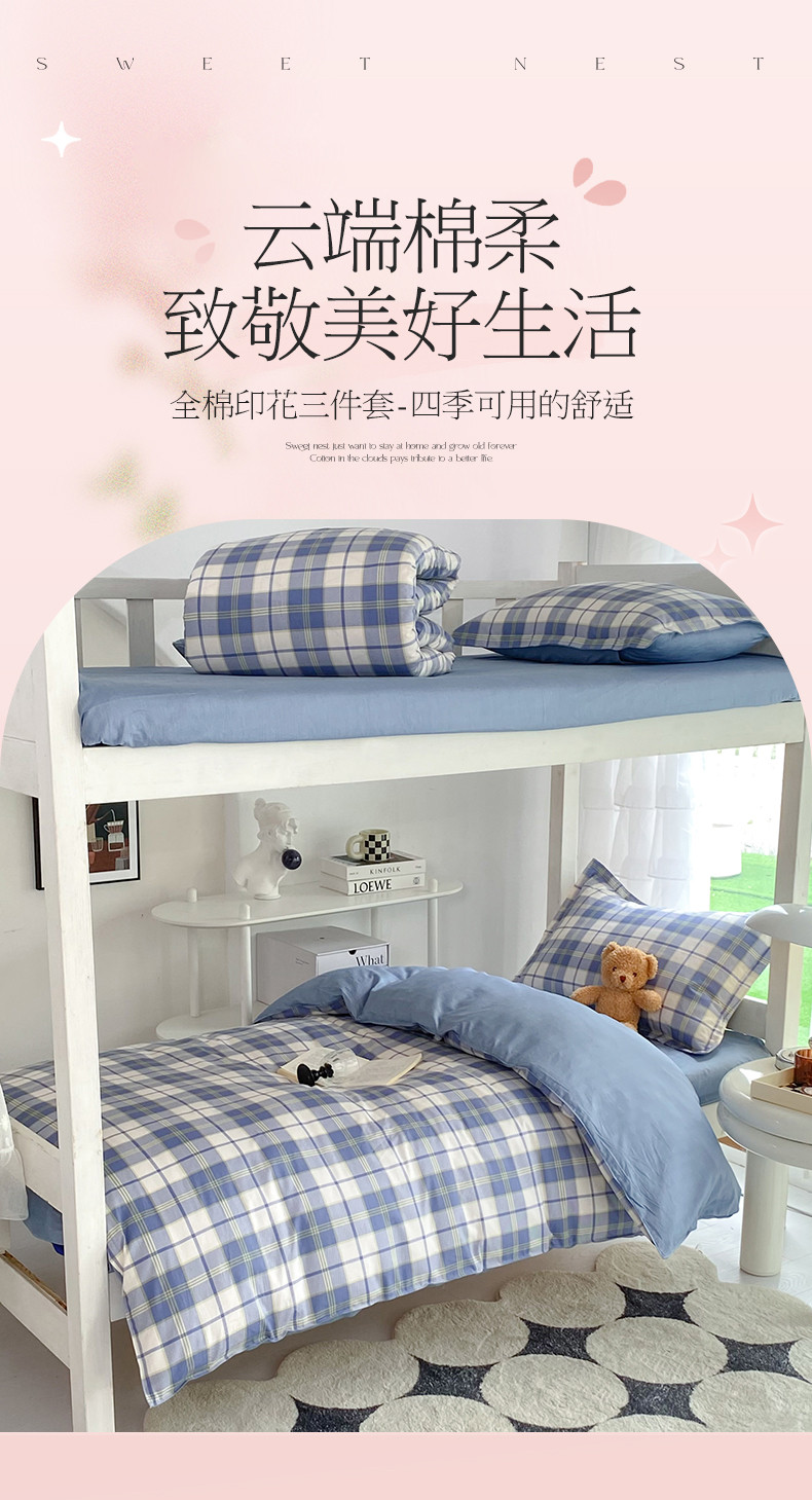 多品 2023新款12868全棉宿舍三件套-第二批 时光记忆