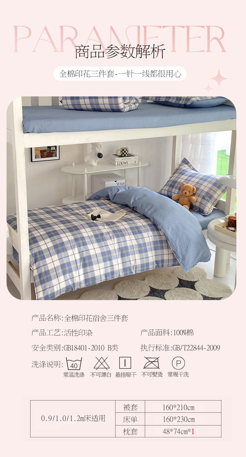 商品名称:多品 2023新款12868全棉宿舍三件套-第二批 时光记忆