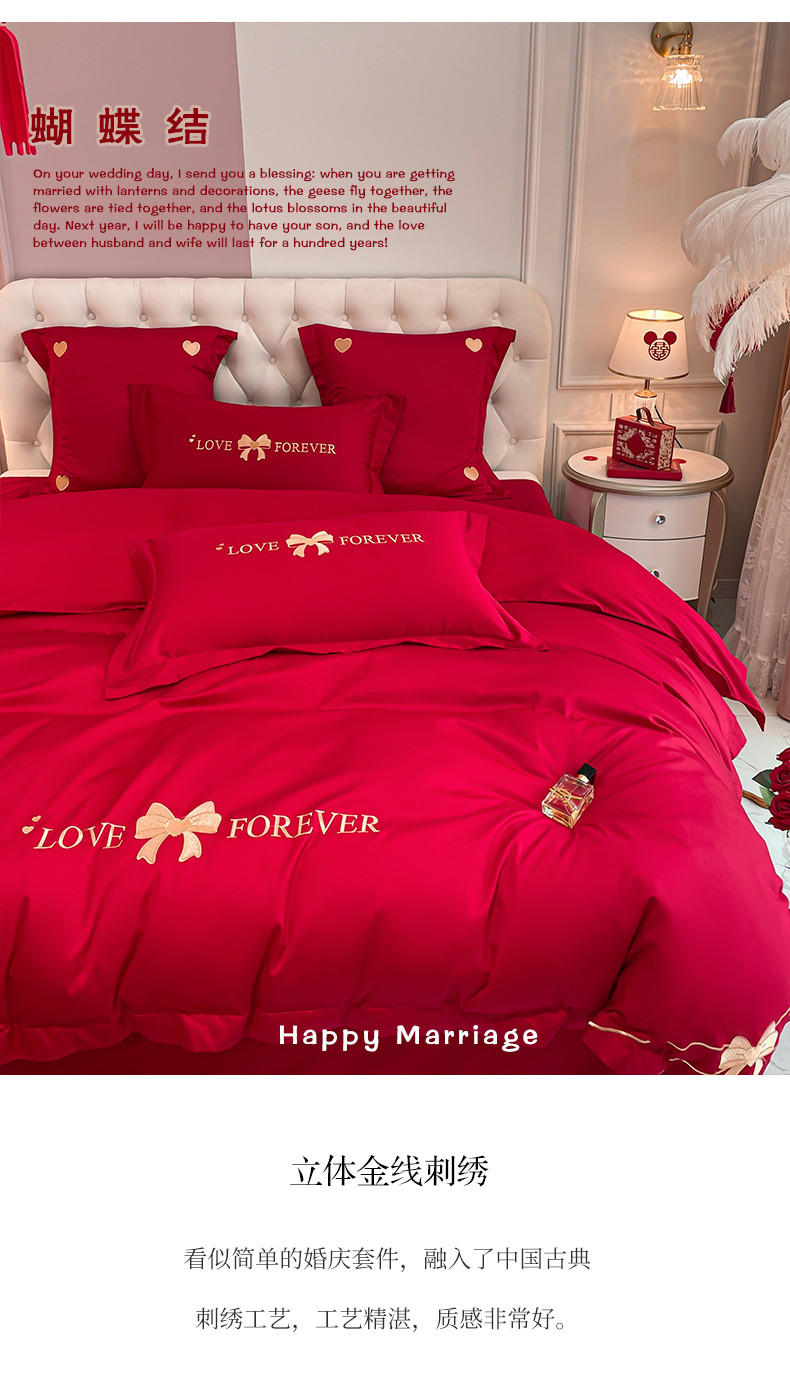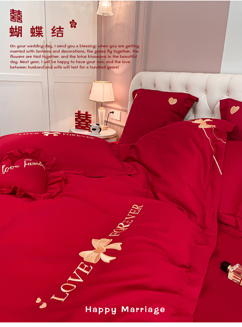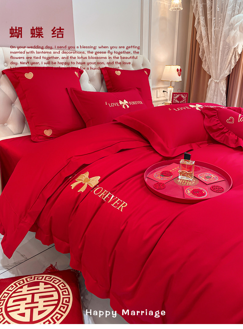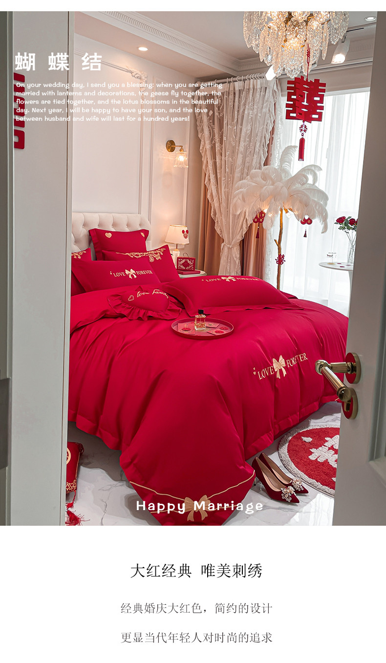 当前位置: 91家纺网 > 商品网购 > 床品套件 > 四件套 > 婚庆四件套 > 新款亲肤舒适时尚婚庆四件套系列 蝴蝶结