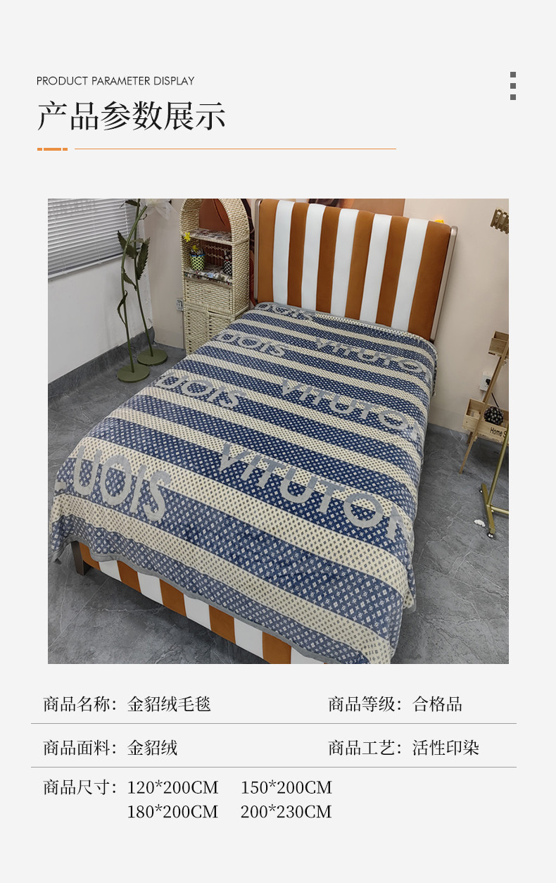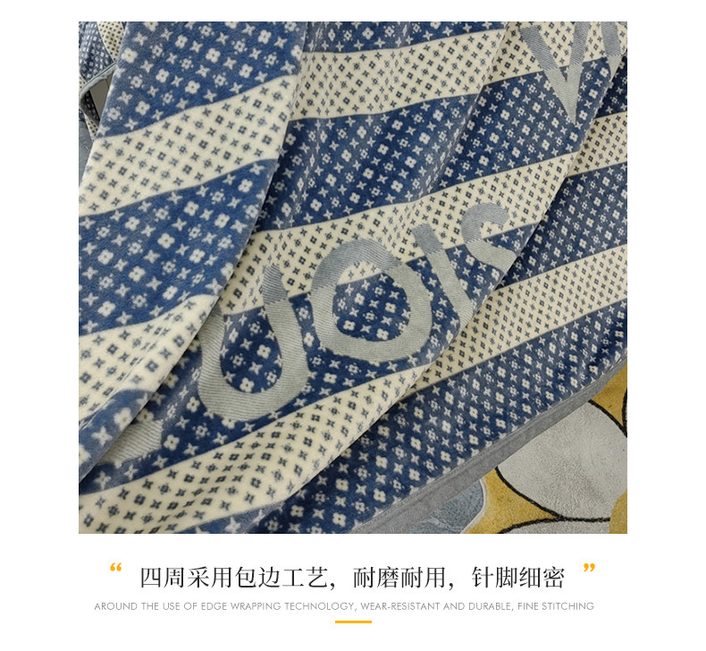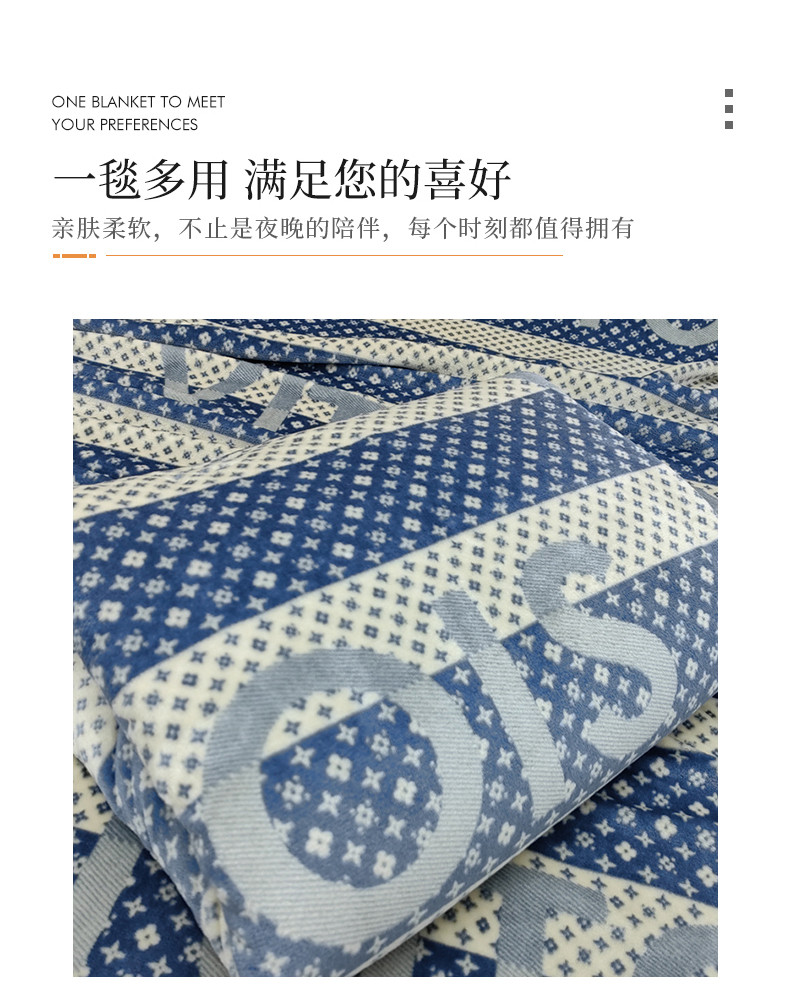商品名称:爱她美 2023新款300g金貂绒系列加厚包边法莱绒盖毯毛毯子 银蓝条