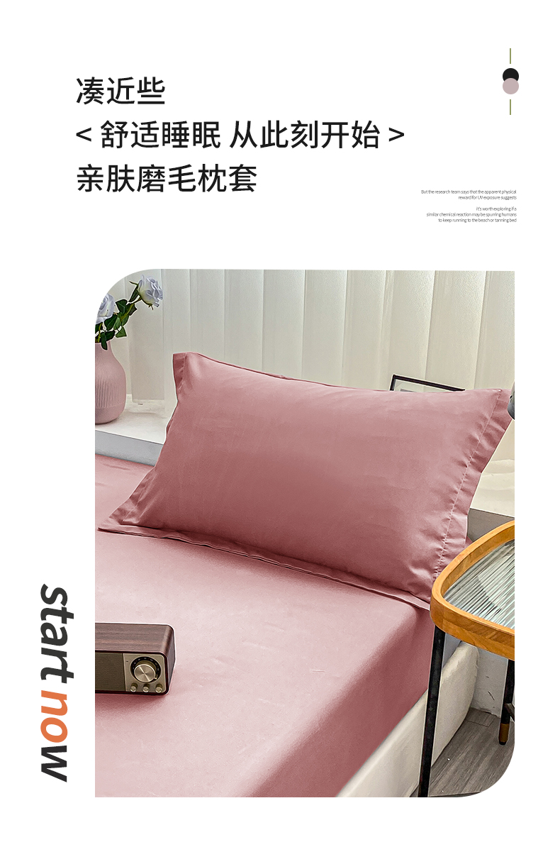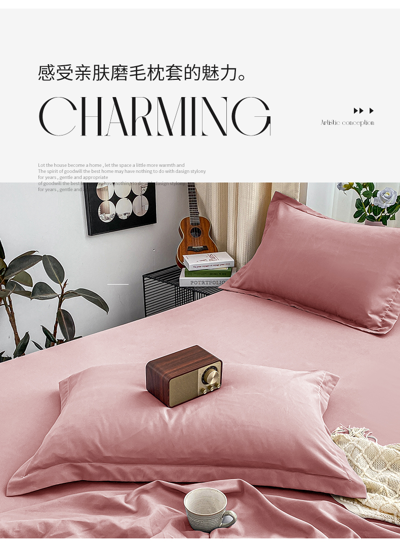 恬澳家纺 2024新款亲肤磨毛单枕套系列-实拍风 粉豆沙