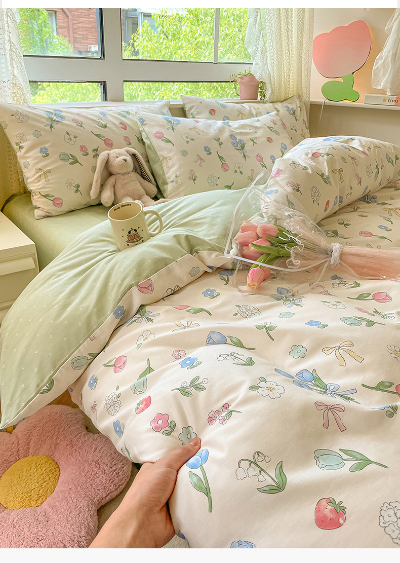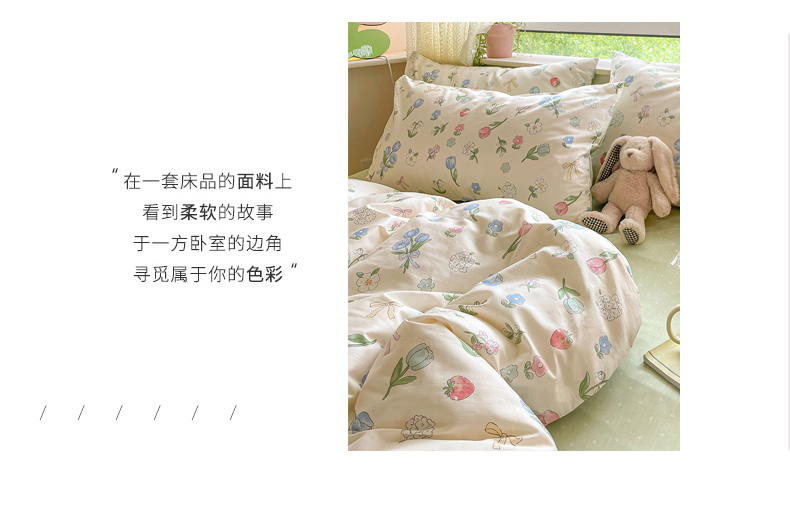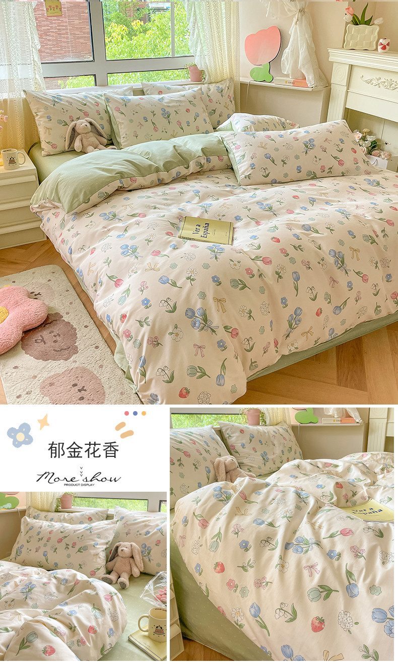 当前位置: 91家纺网 > 商品网购 > 床品套件 > 四件套 > 全棉普通四件套 > 麦伦家居 2023新款全棉斜纹卡通小清新系列四件套-第四波 郁金花香