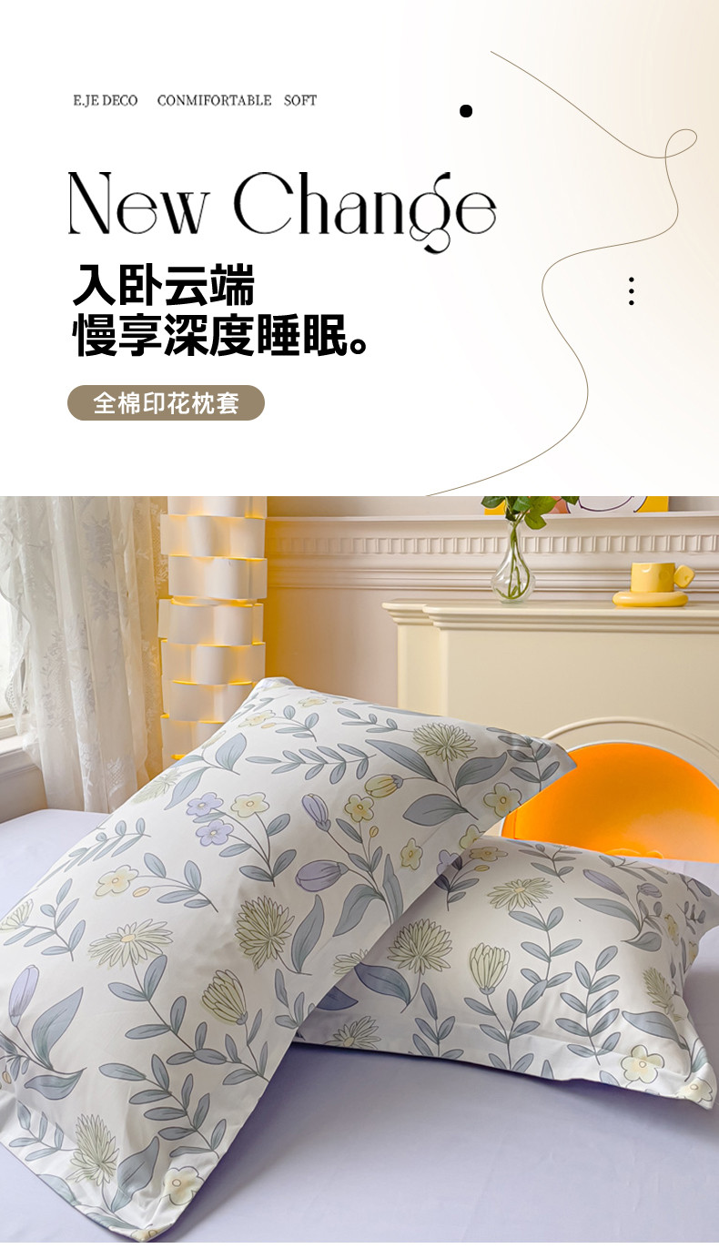金鑫汇 2023新款喷气全棉枕套一对 诗情画意