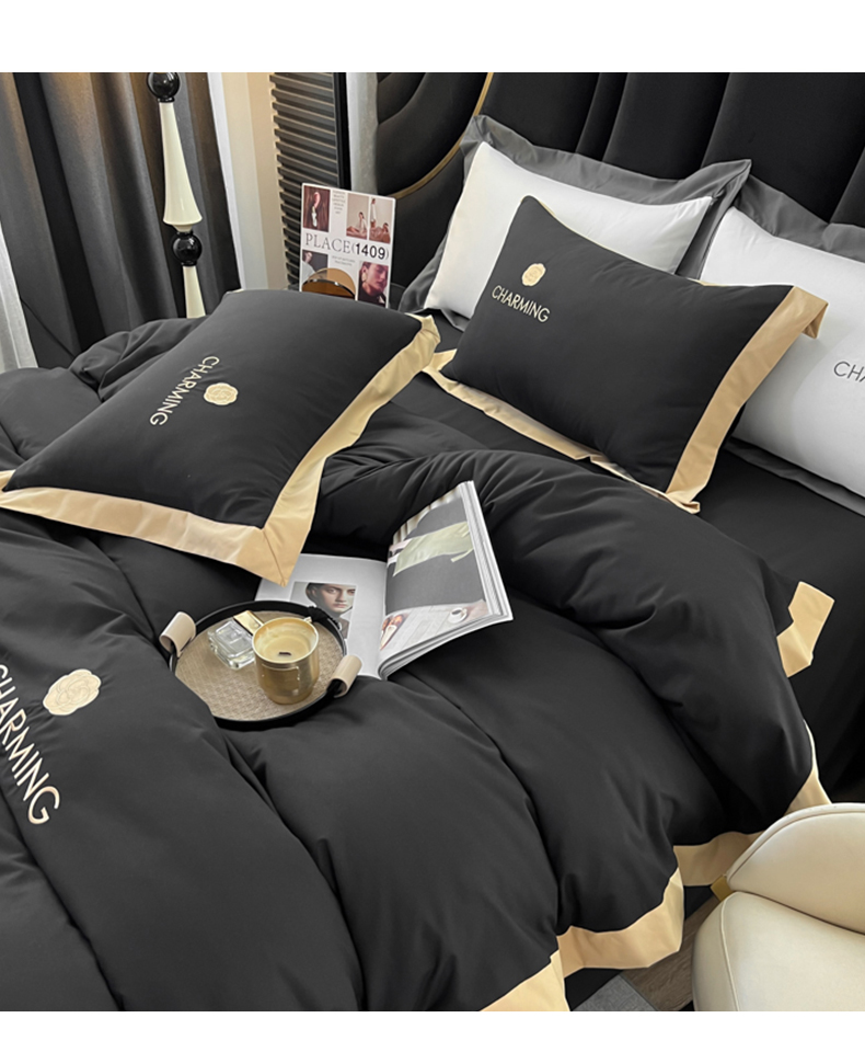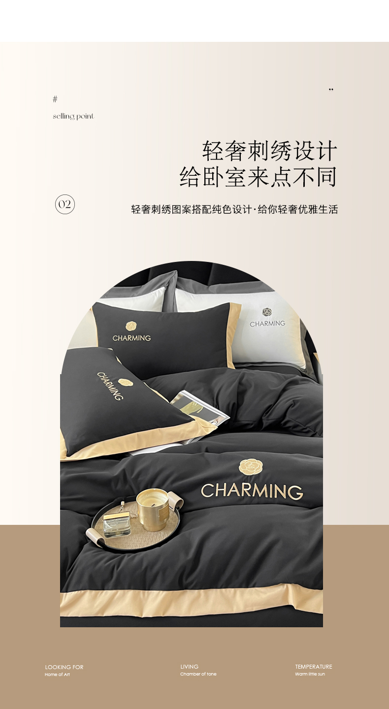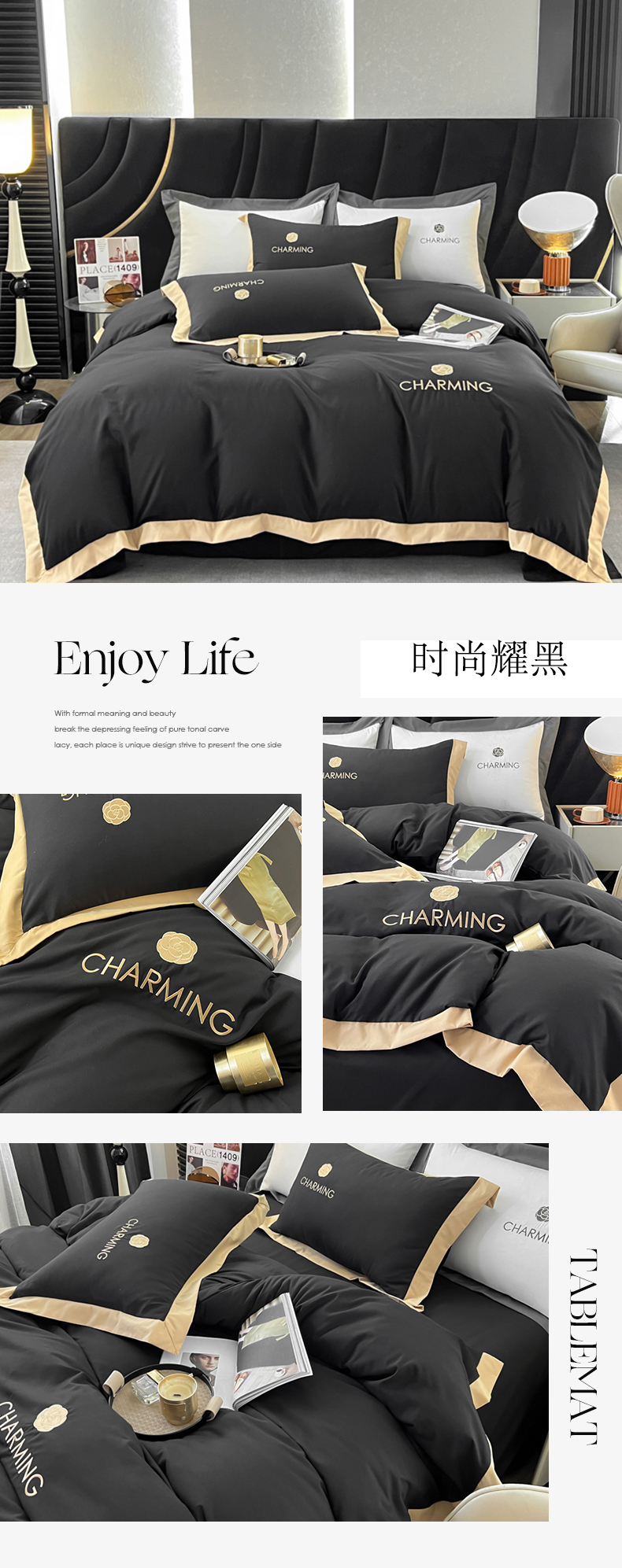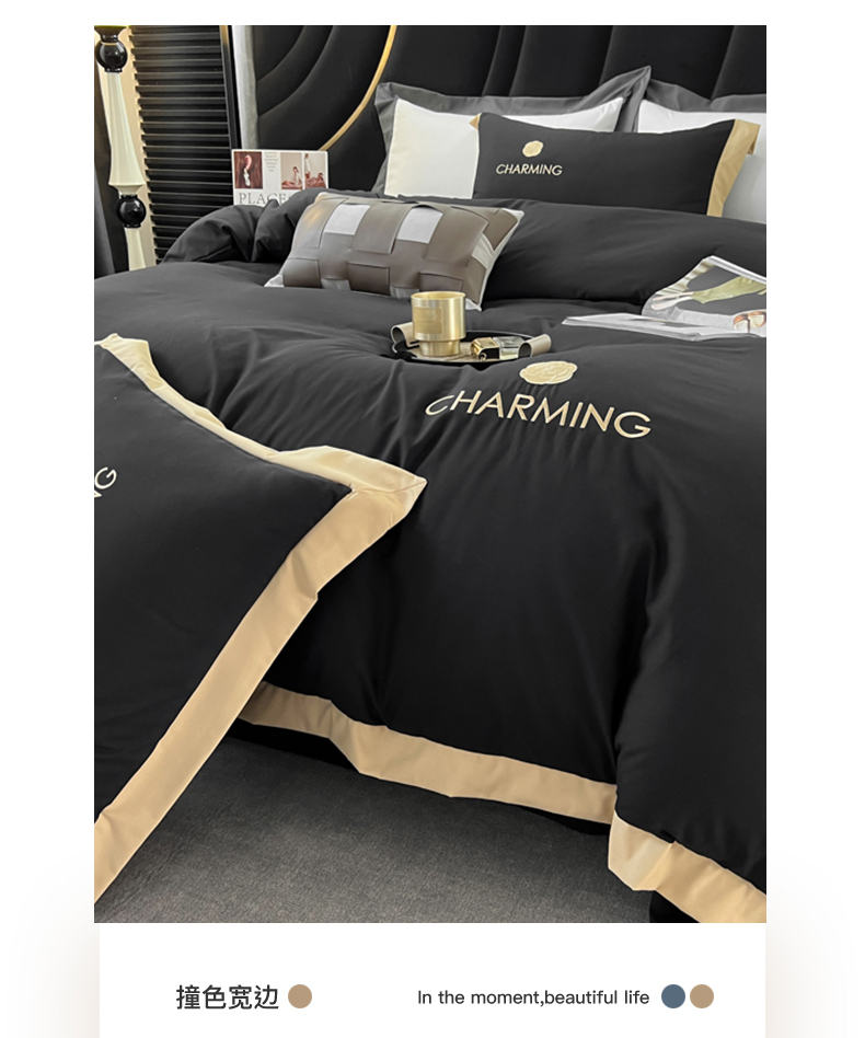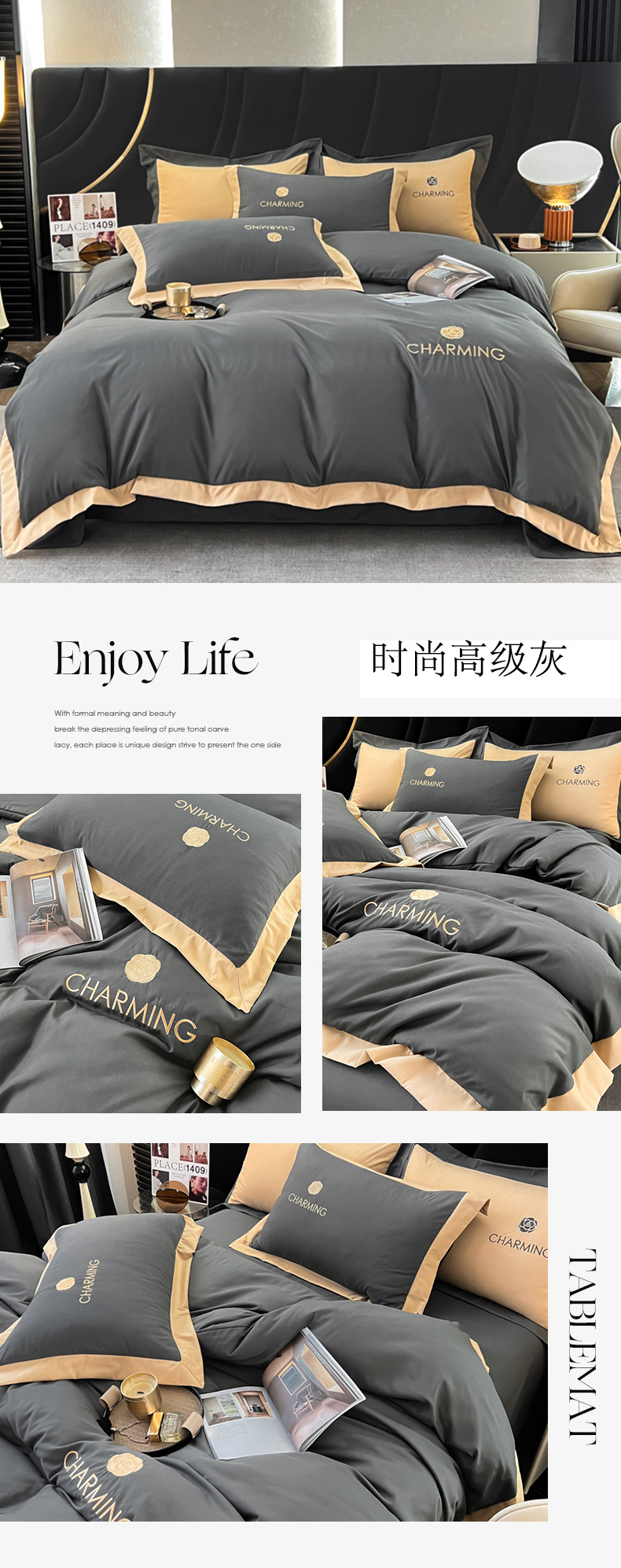 (总)千希家纺 2025新款轻奢简约亲肤棉绣花刺绣四件套-赛尔系列,赛尔-星耀黑,赛尔-蜜桃粉,赛尔-莫尼灰,赛尔-雾霾蓝