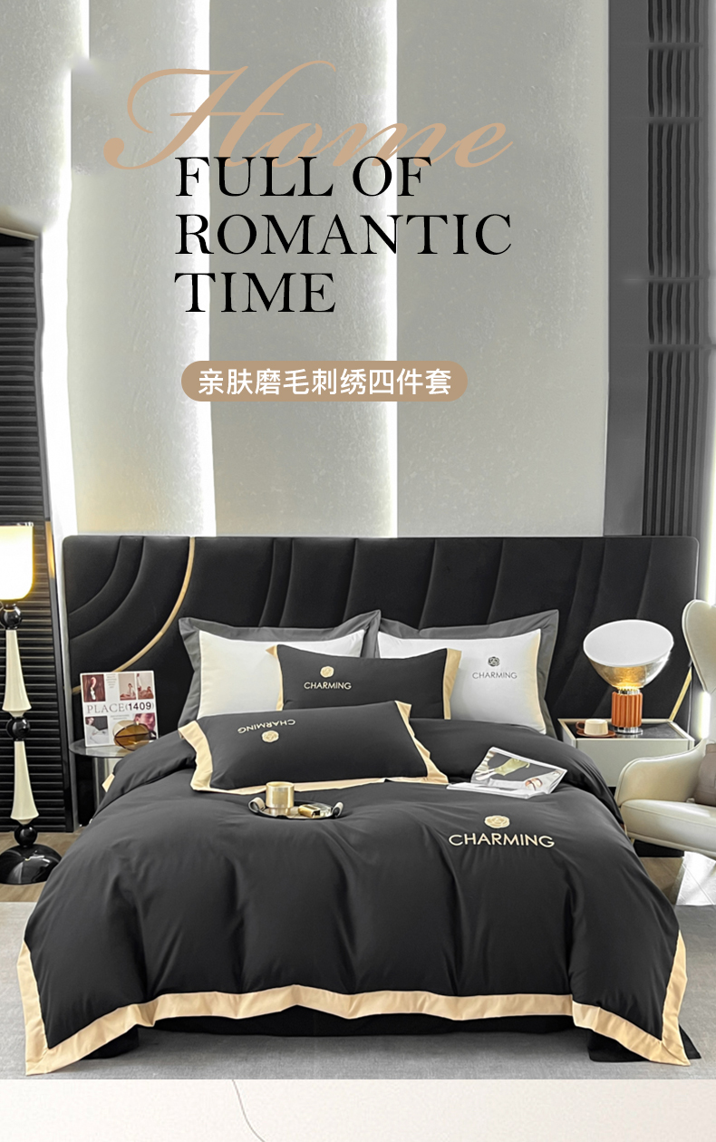(总)千希家纺家纺 2023新款亲肤磨毛刺绣四件套-时尚系列