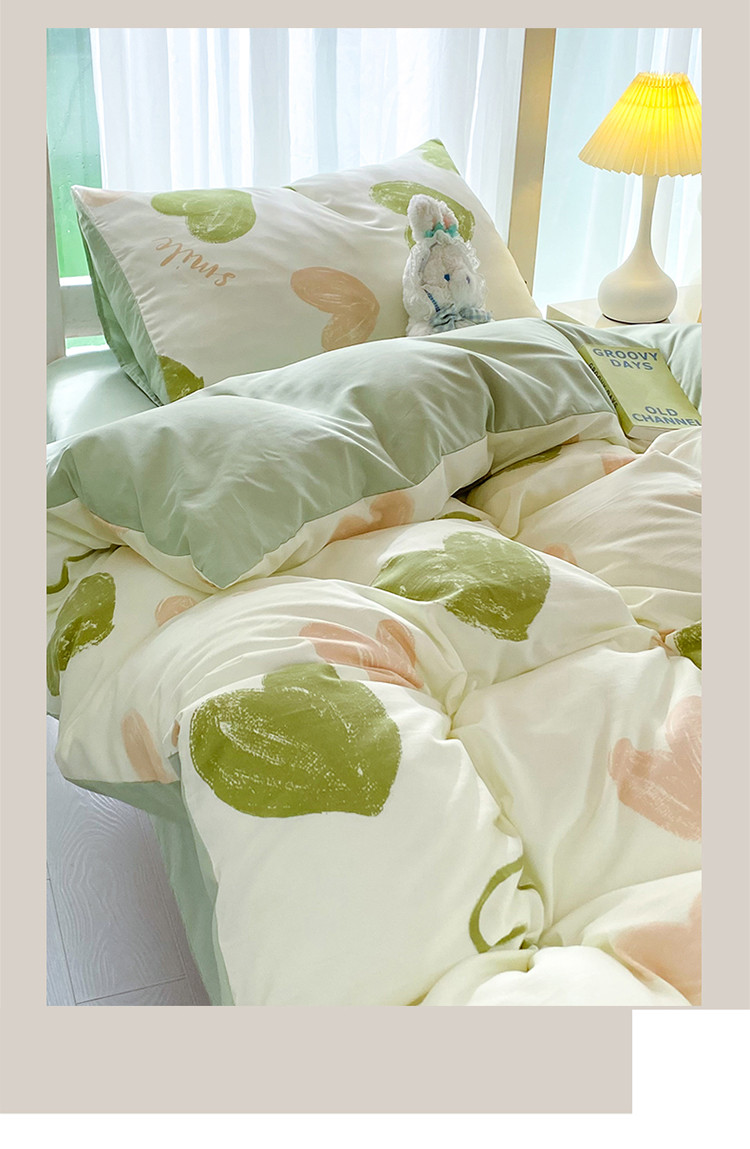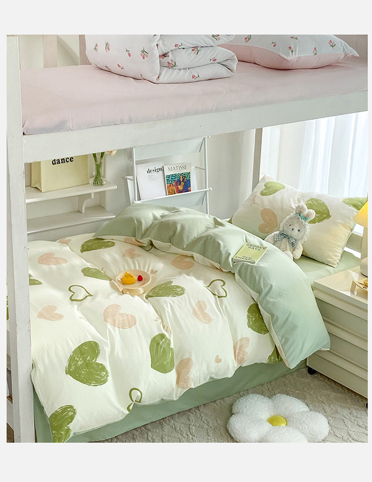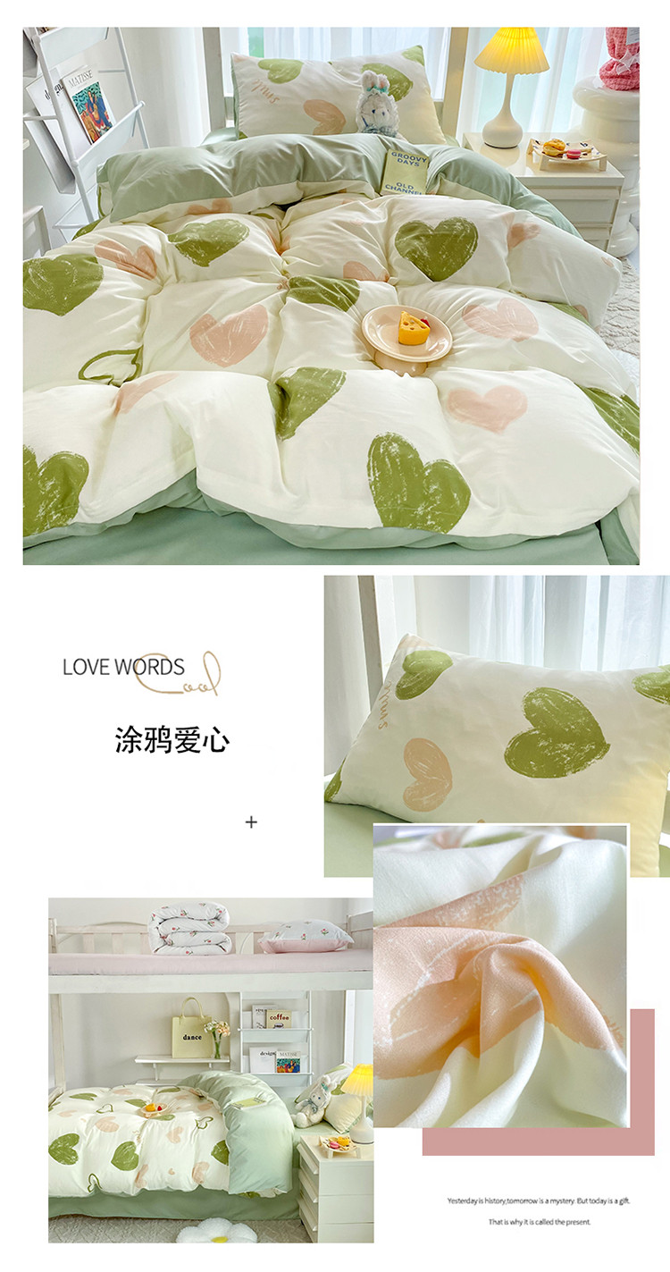 商品名称:妖妖家纺 2023新款超柔水洗双层纱三件套宿舍床 涂鸦爱心
