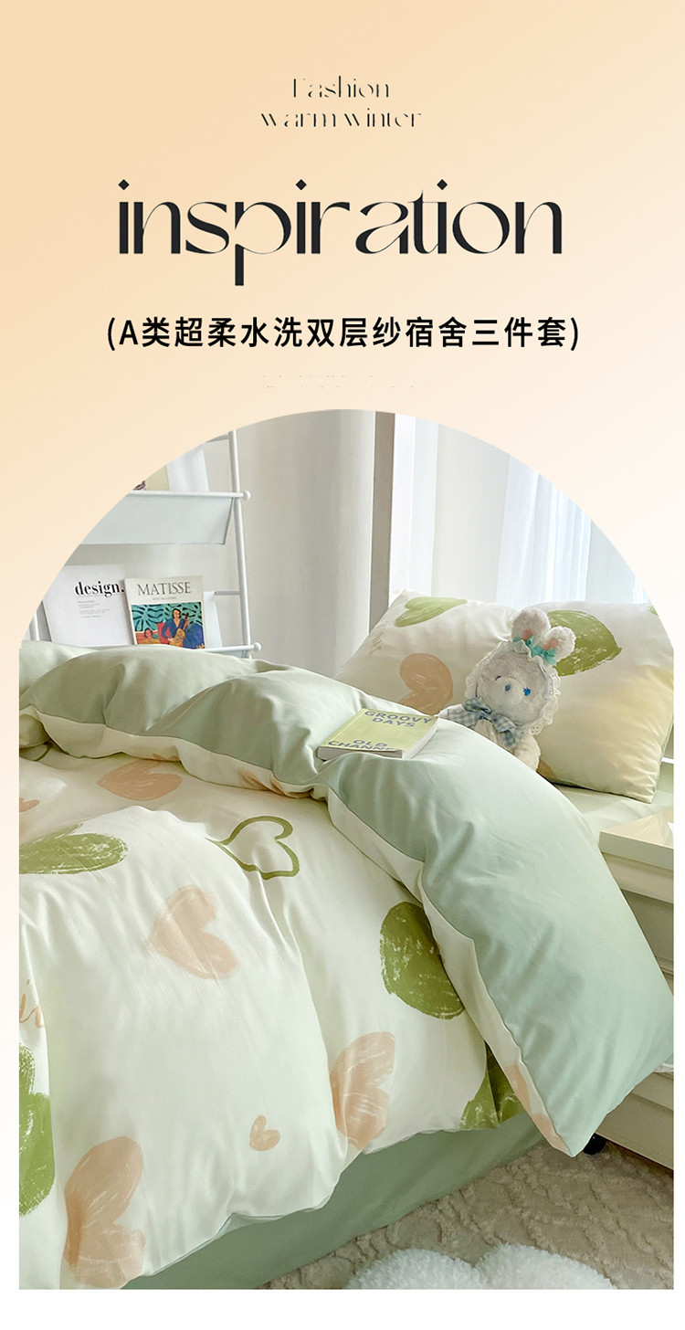 (总)妖妖家纺 2023新款超柔水洗双层纱三件套宿舍床,风铃花,后花园,花儿与兔,及风情,尽相思,静谧,可爱棕熊,兰花草,柿柿如意,涂鸦爱心,夏日樱桃,小熊花园,月季花香