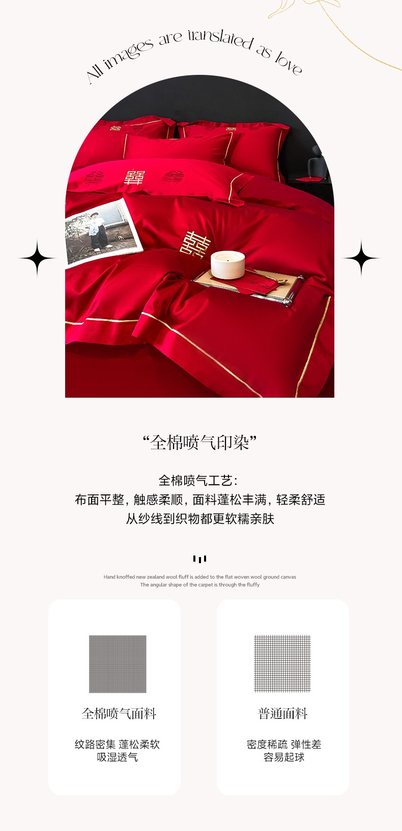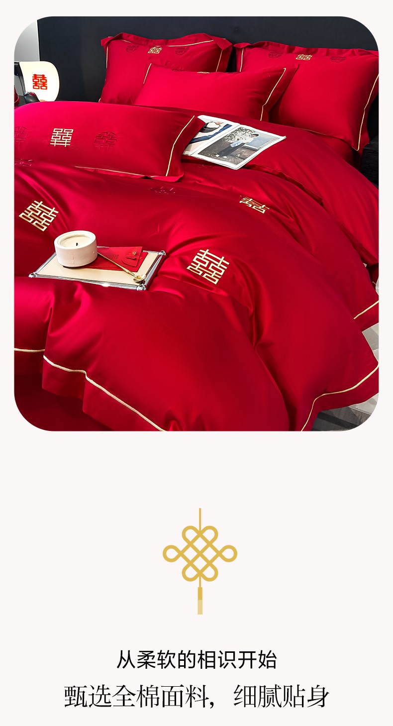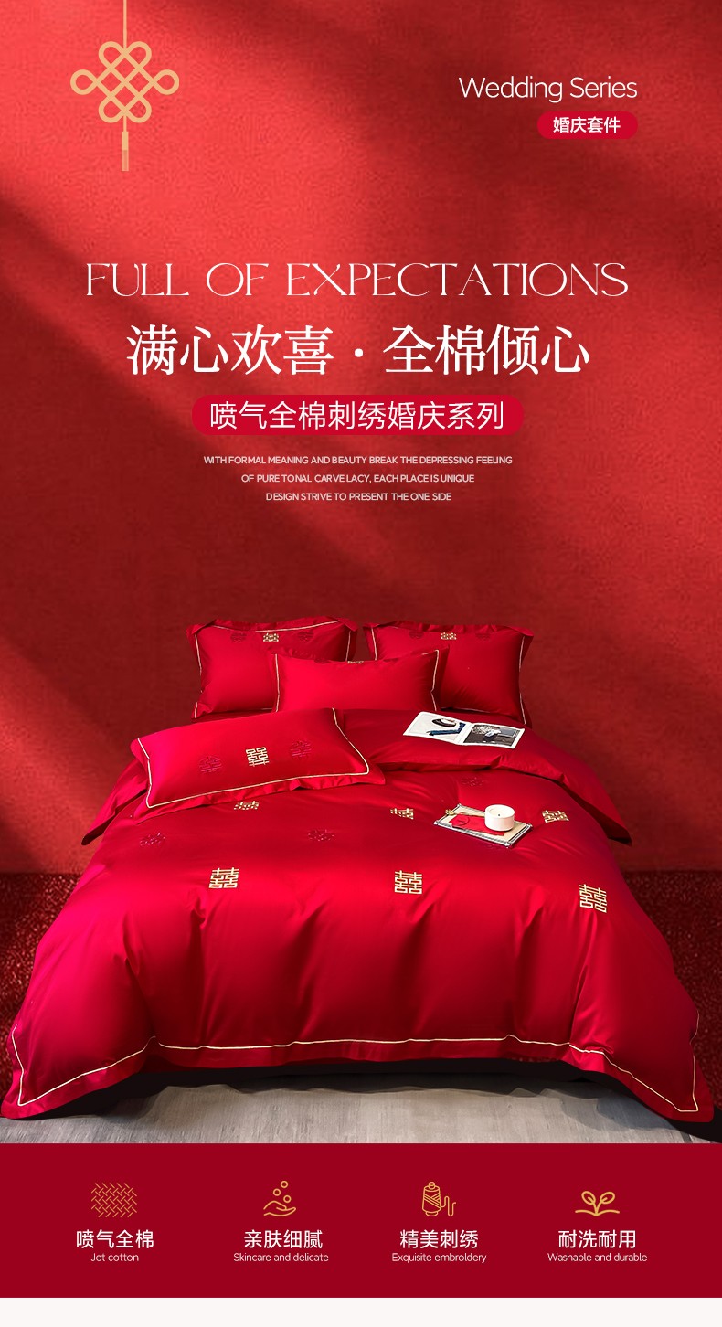 商品名称:金麦 2023新款喷气全棉刺绣婚庆系列四件套 喜嫁