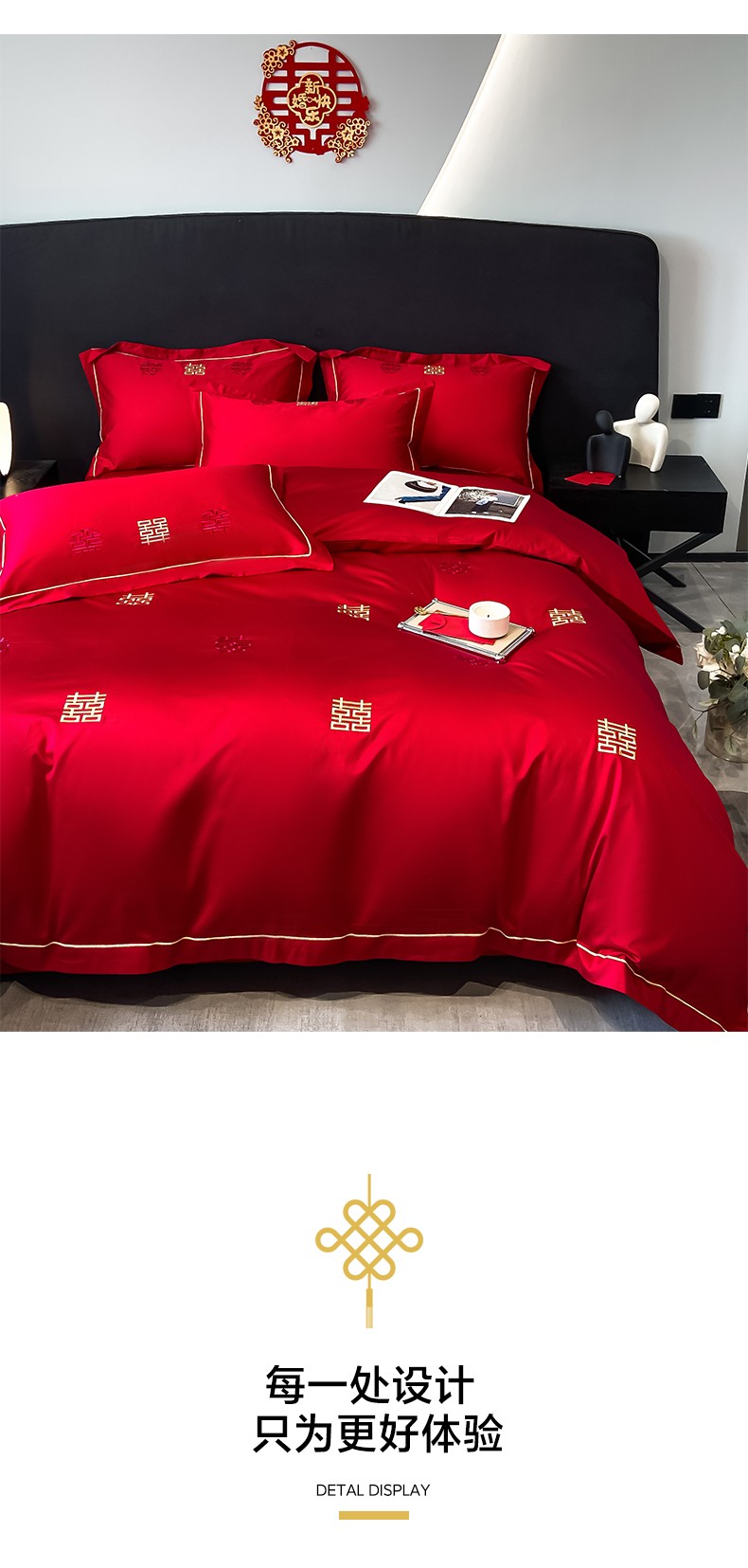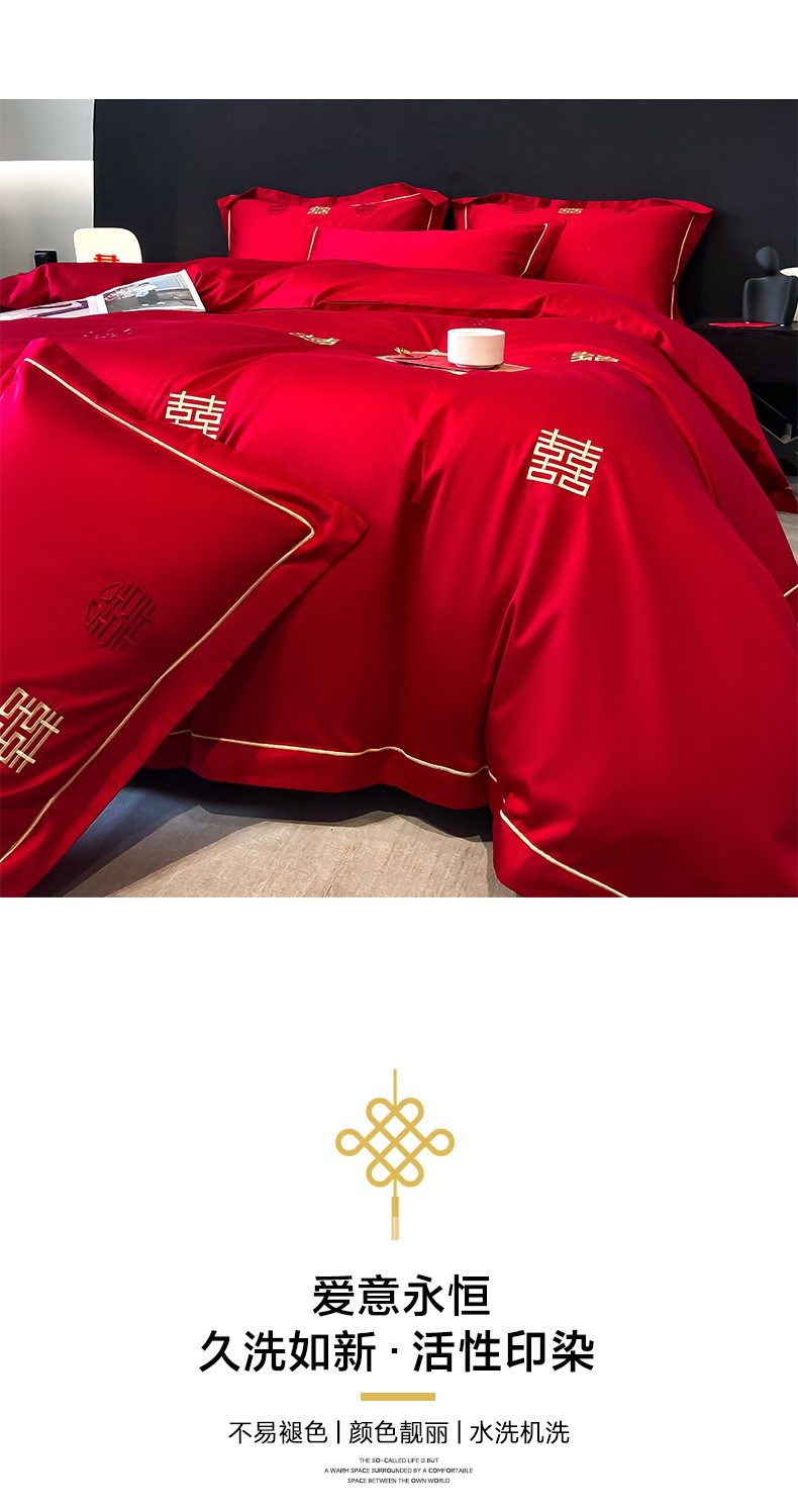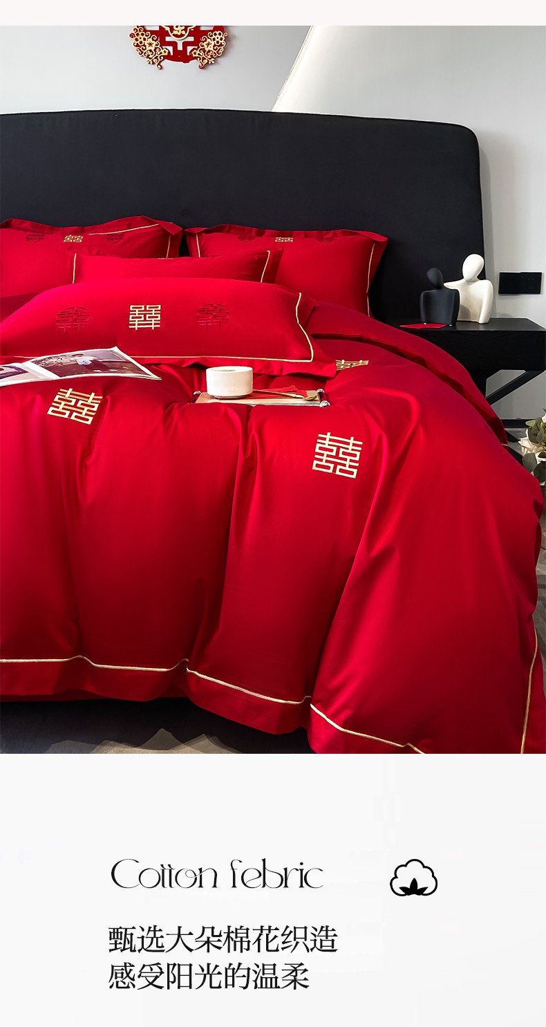 商品名称:金麦 2023新款喷气全棉刺绣婚庆系列四件套 喜嫁